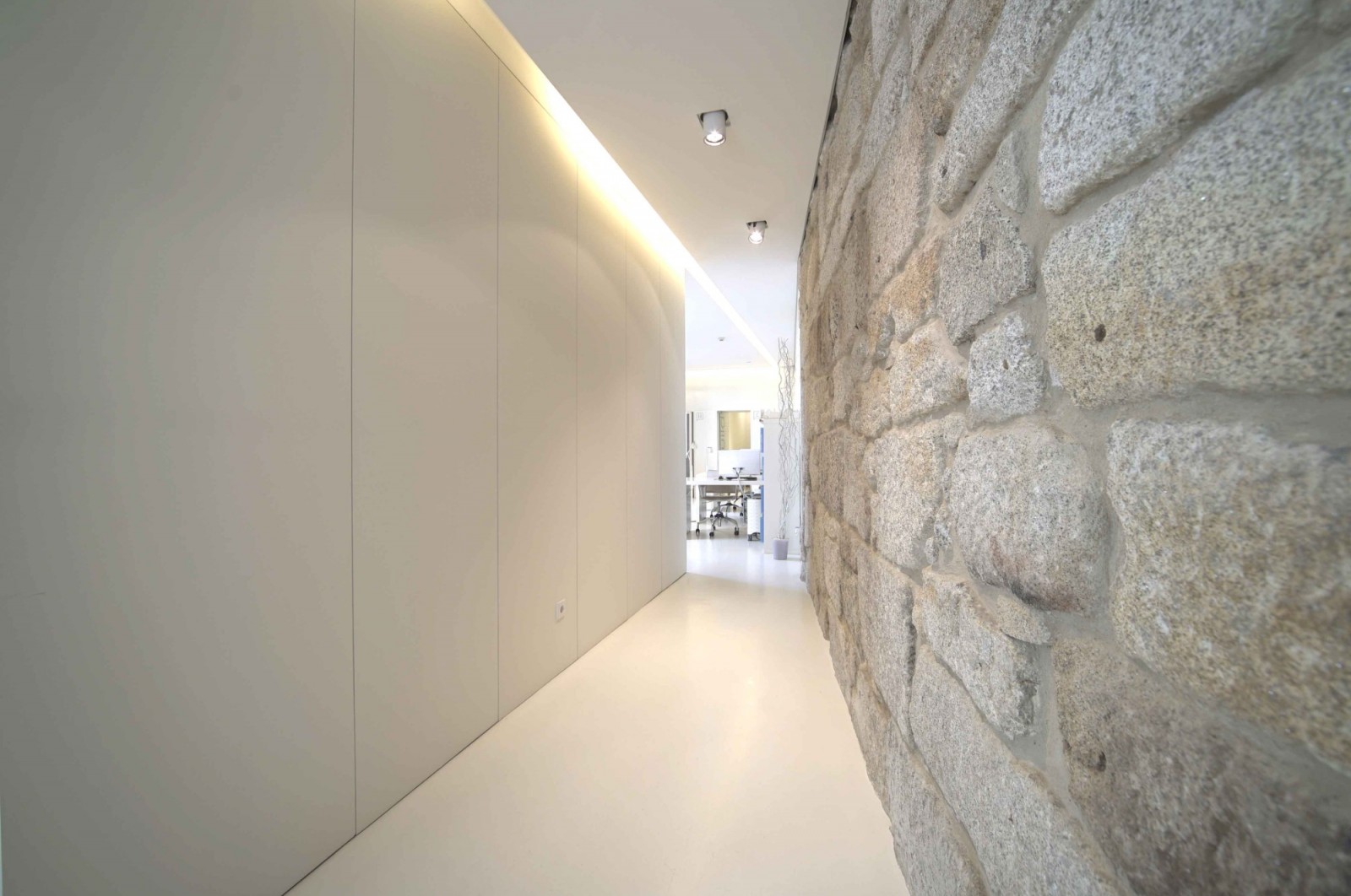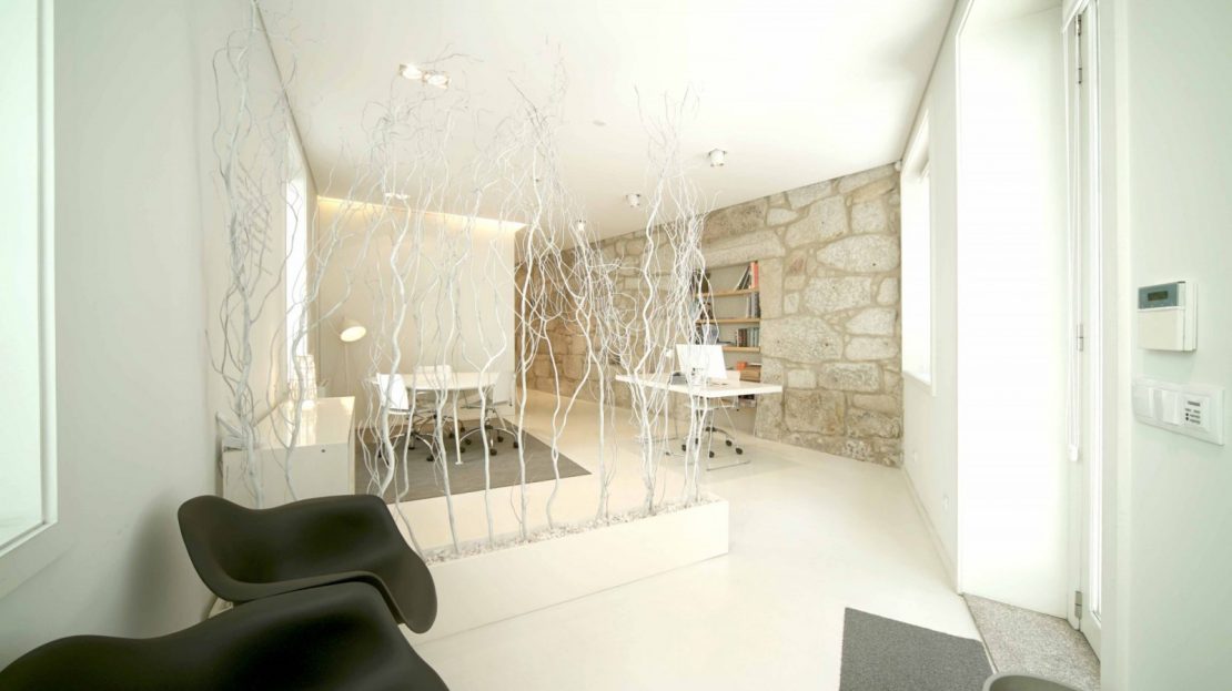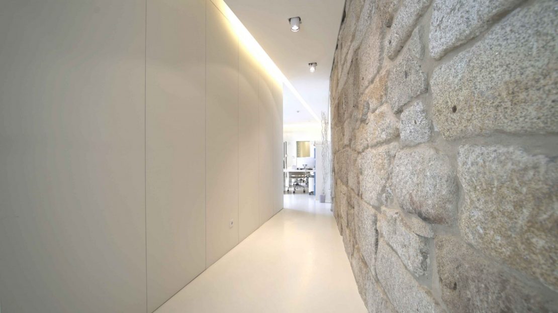 Apesar das necessárias obras de adaptação, para atingir os níveis de conforto que os dias de hoje exigem, o interior conseguiu manter este diálogo entre o antigo e o contemporâneo através da presença de uma parede em pedra à vista que, de forma algo desafiante, afirma “estar aqui para ficar”!