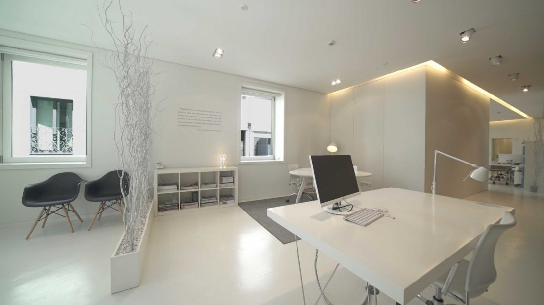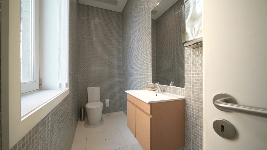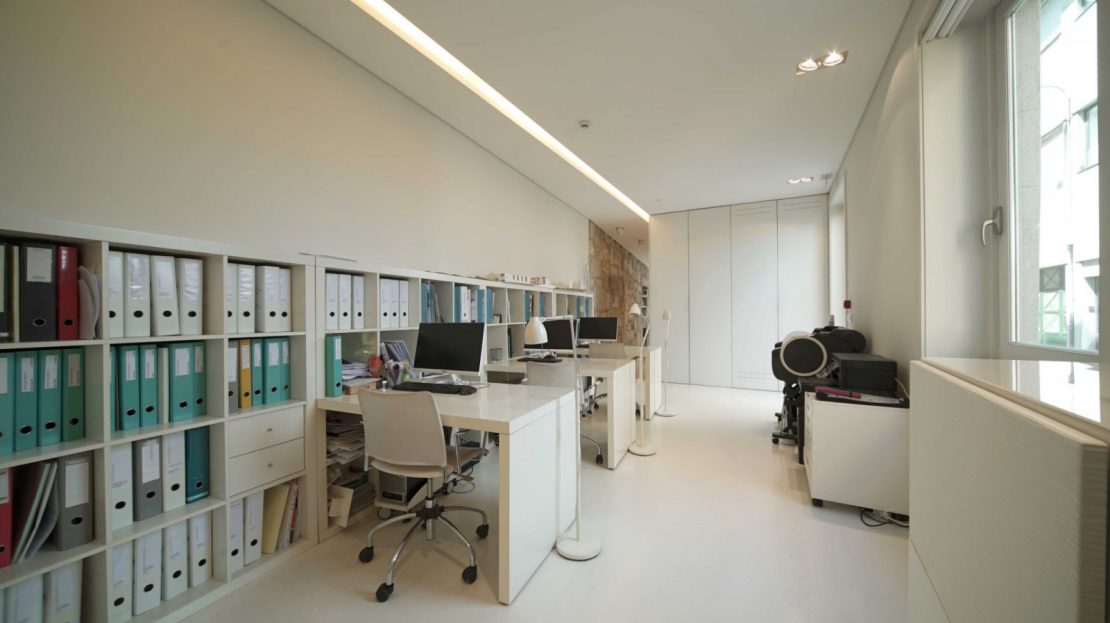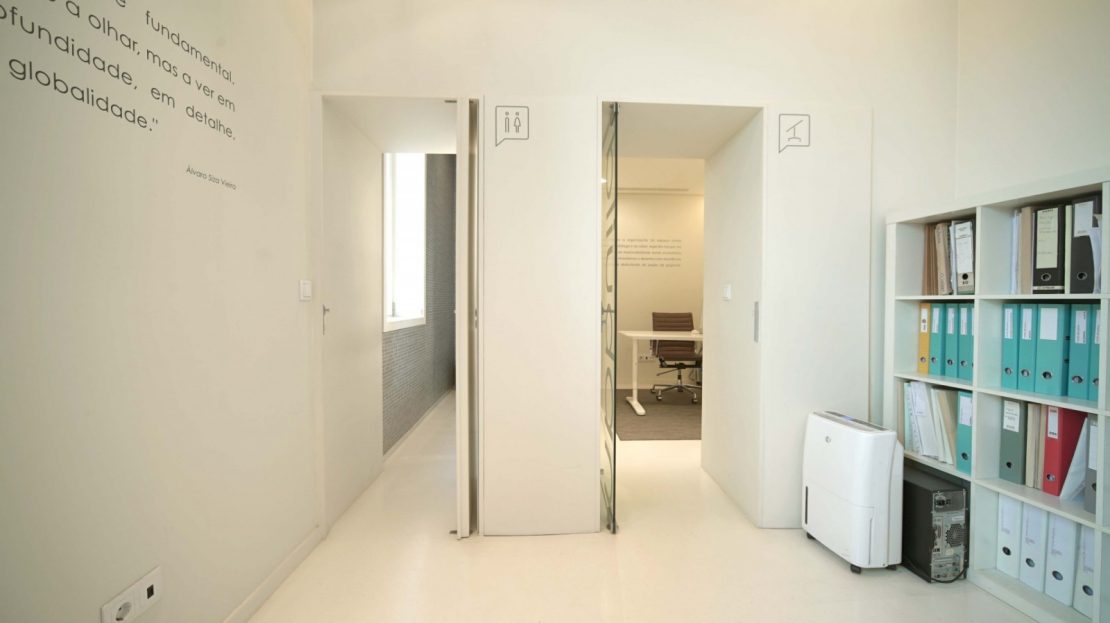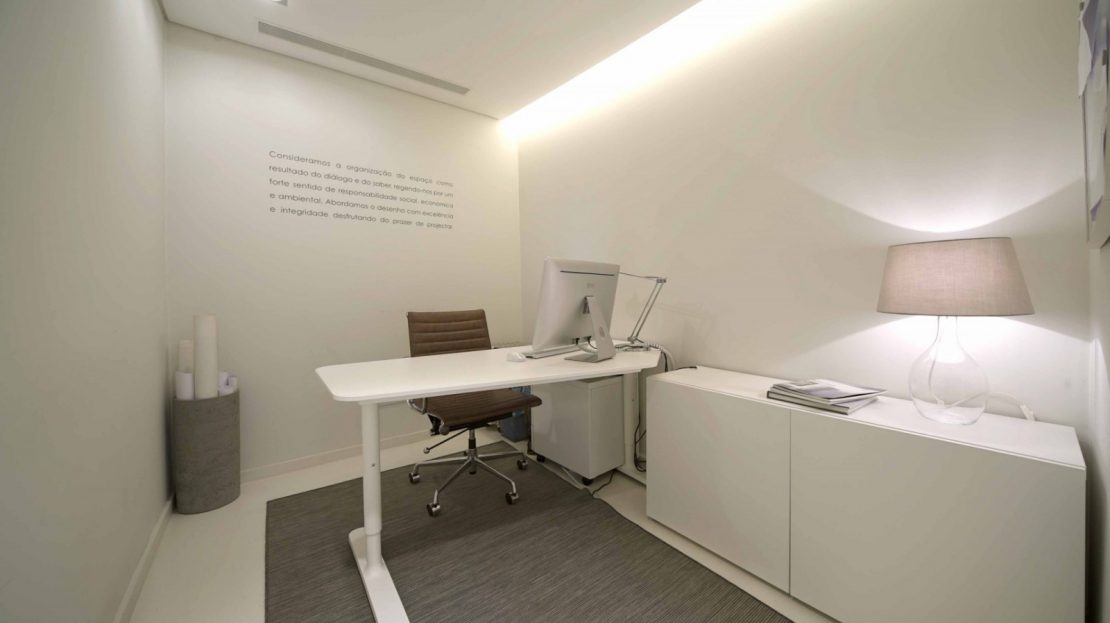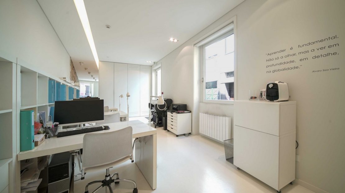 - Entrada pela Tv. Poço das Patas: uma zona de cariz mais privado, funcionando em sistema de um open space, dispondo ainda de um gabinete privado e uma casa de banho com luz natural.