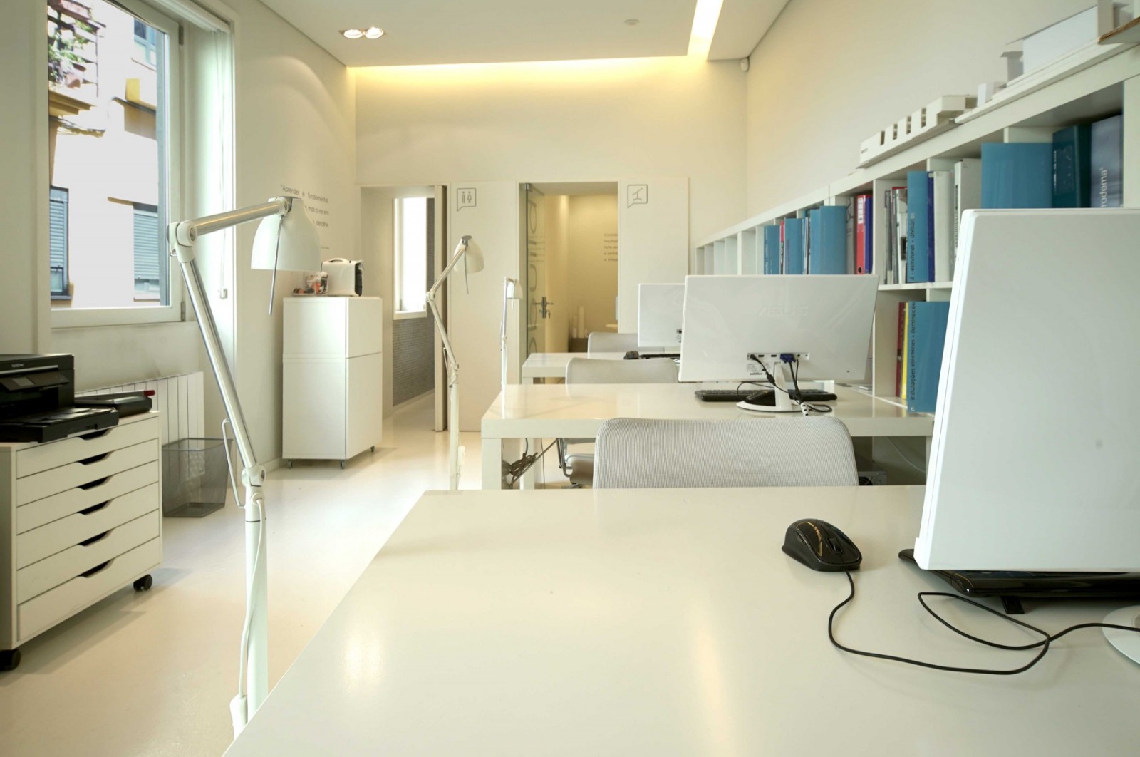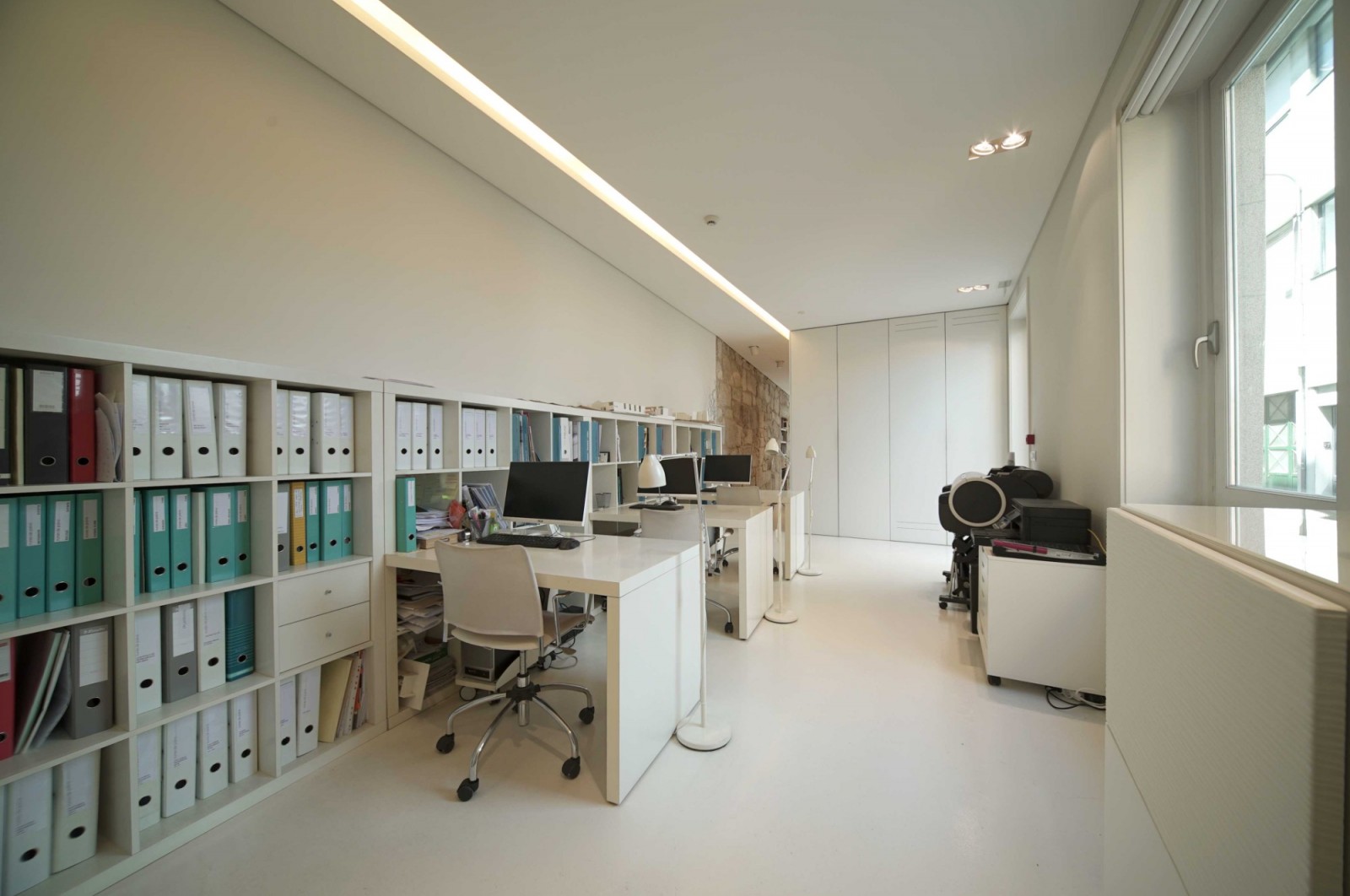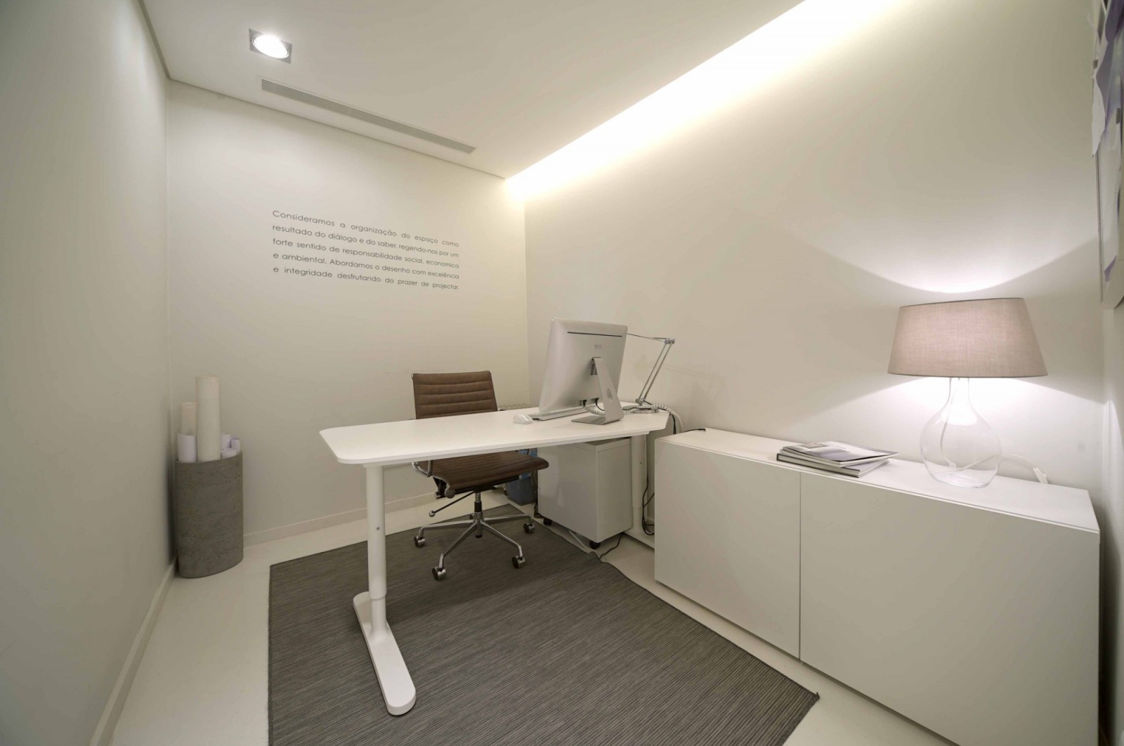 - tecto falso com focos embutidos direcionáveis e iluminação indirecta;