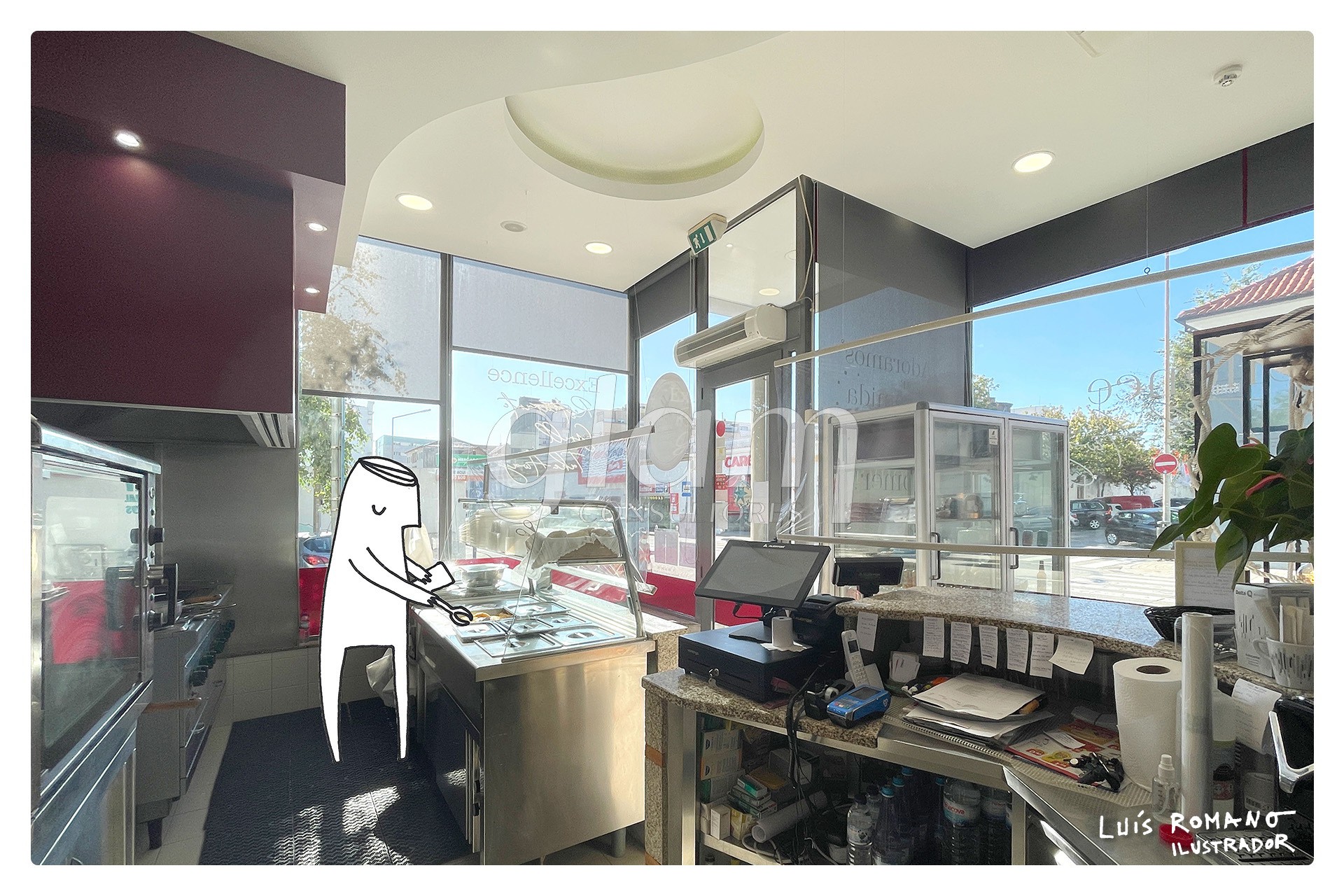 Na montra também se lê…“Cada um é para o que nasce! Nós nascemos em 2002 vocacionados para take-away.” Os proprietários deste estabelecimento já