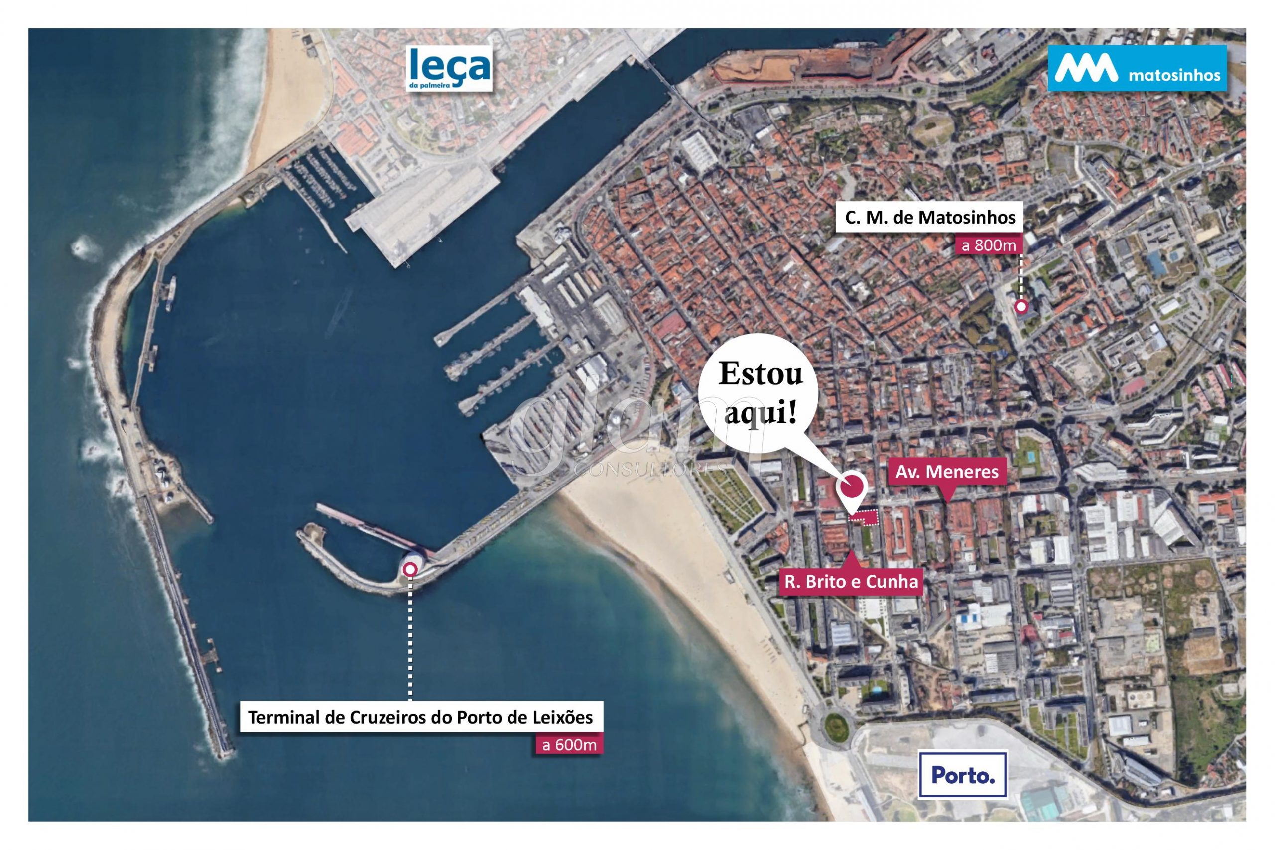 - a 800m de distância da Câmara Municipal de Matosinhos;