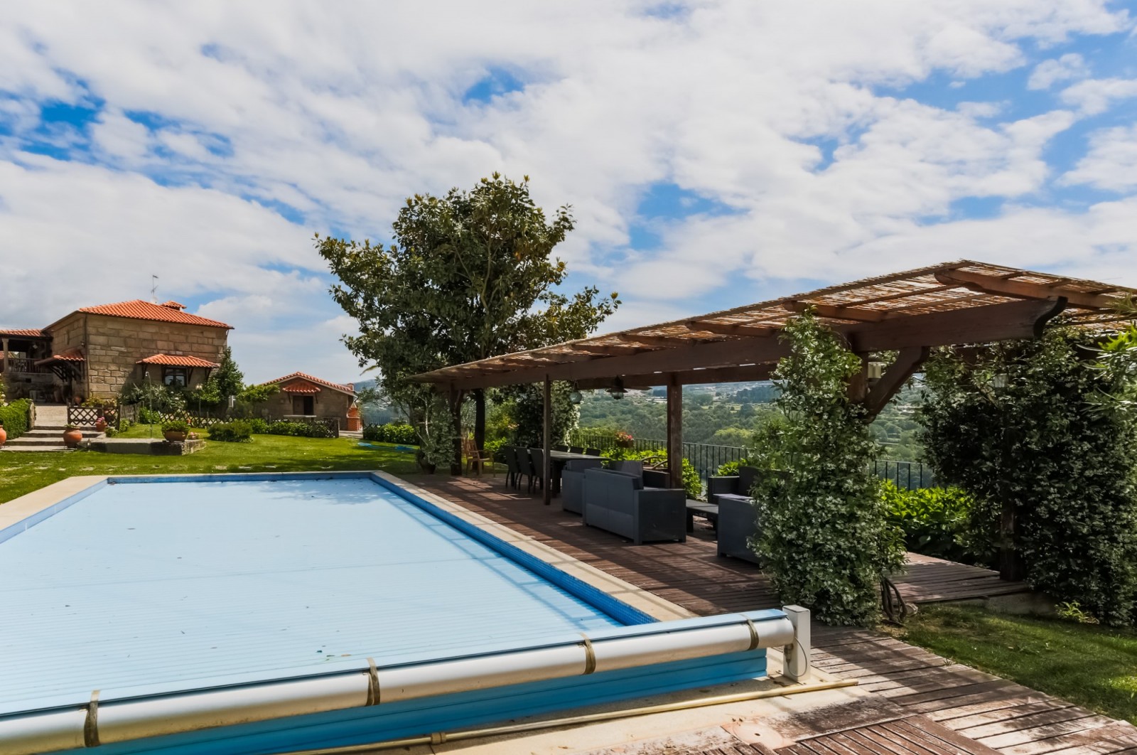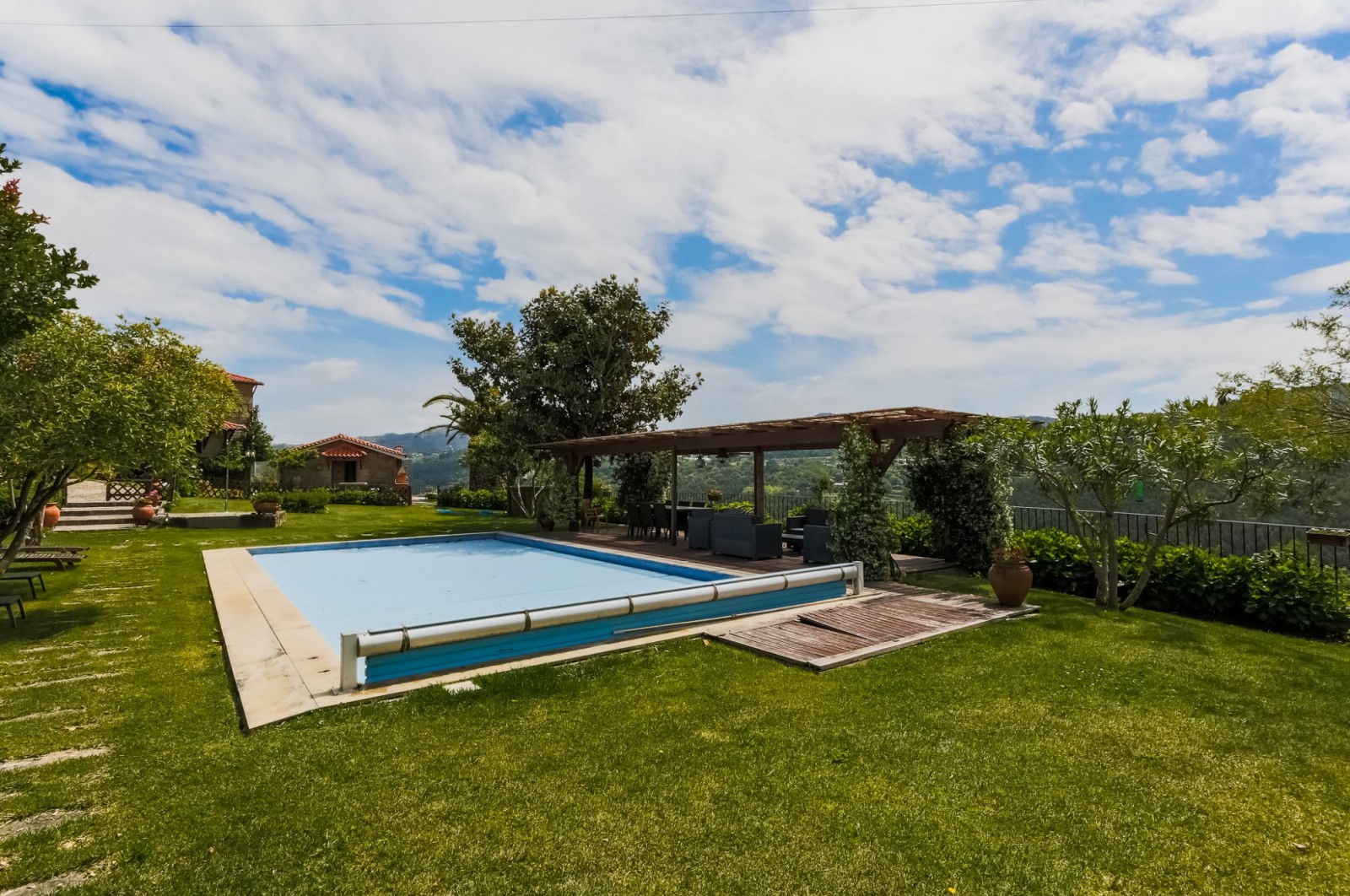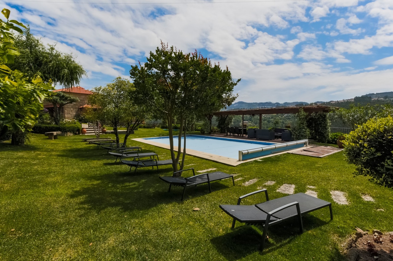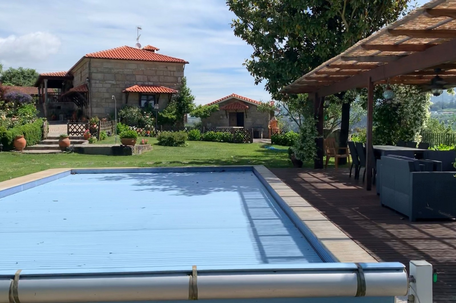 - zona da piscina com relvado e pérgula de apoio à zona exterior;