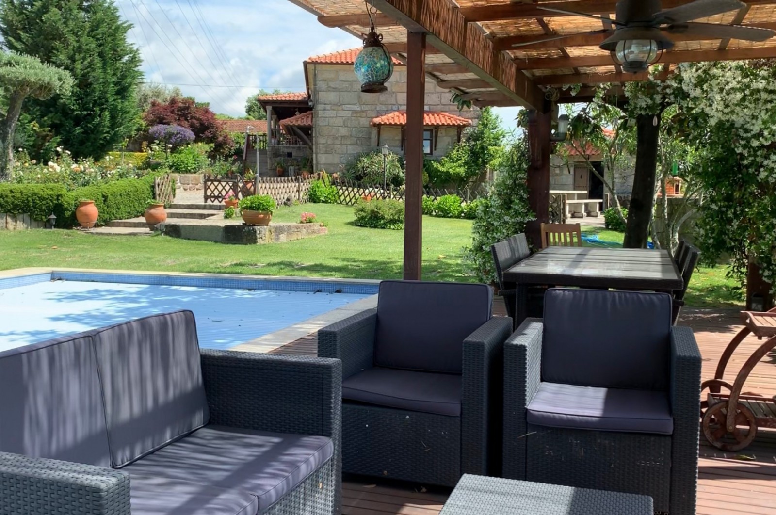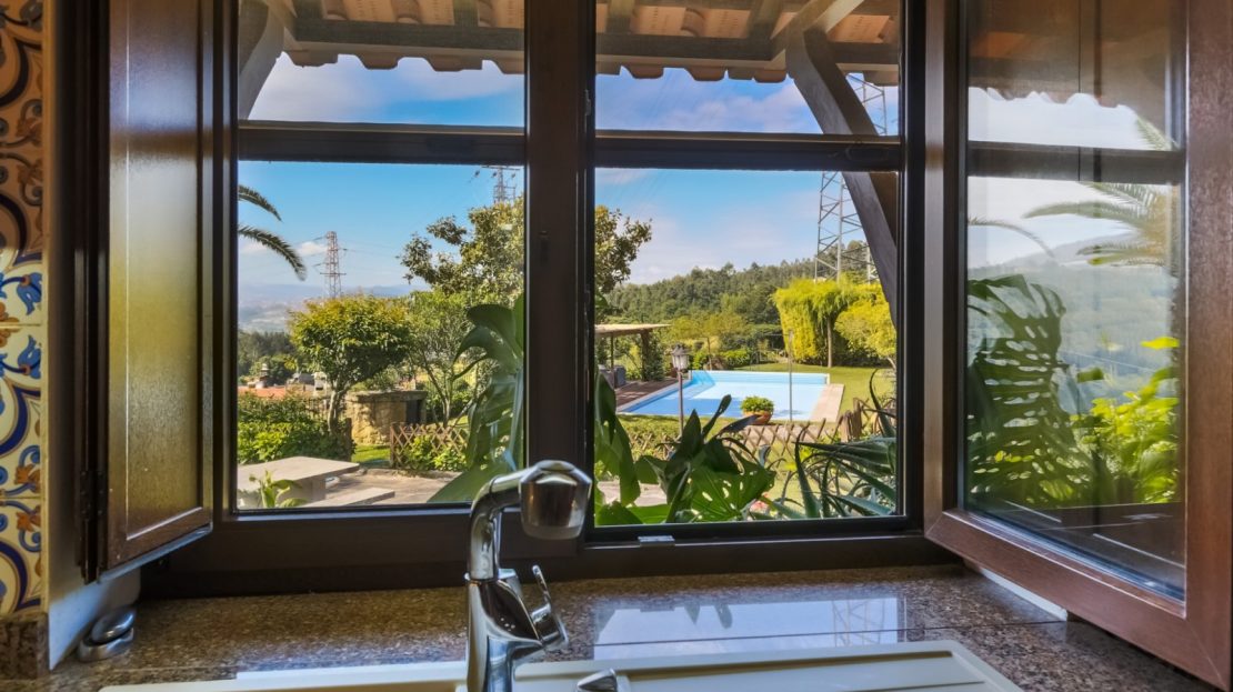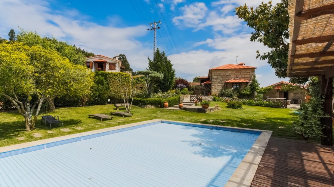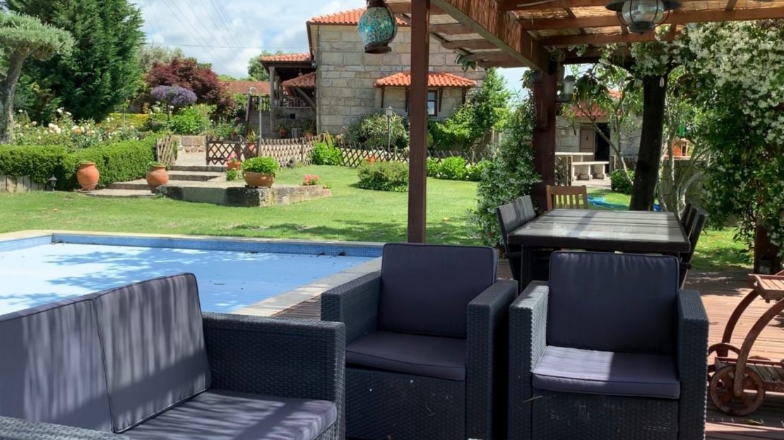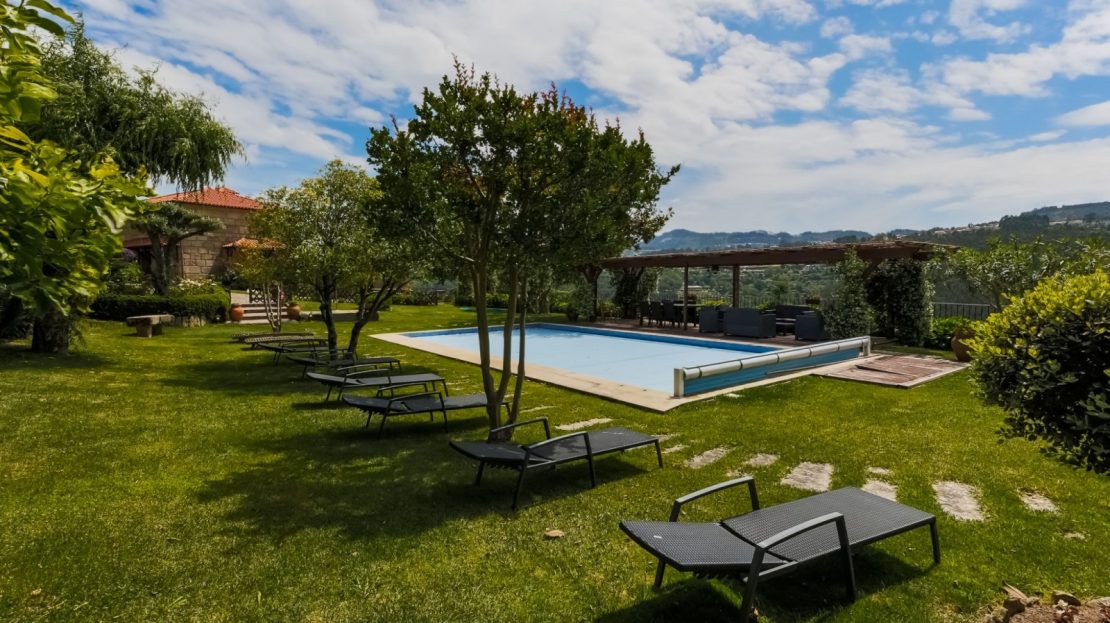 moradia/quinta de lazer pronta a habitar (a 45 minutos do Porto); jardim com piscina com vistas rio (a 200m do rio Tâmega); cozinha regional completam