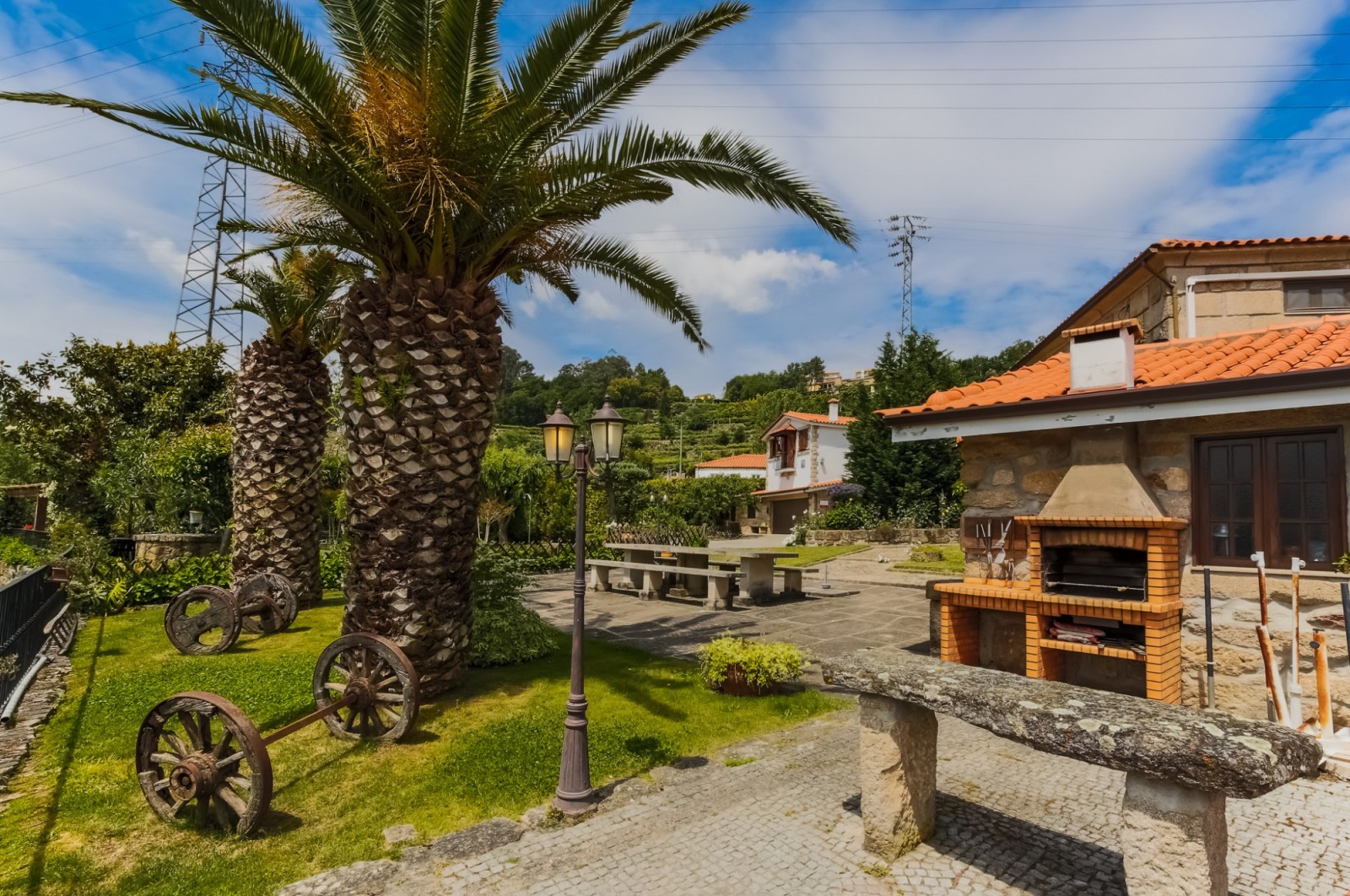 - zona da churrasqueira com área para refeições e casa de apoio à piscina com casa de banho;