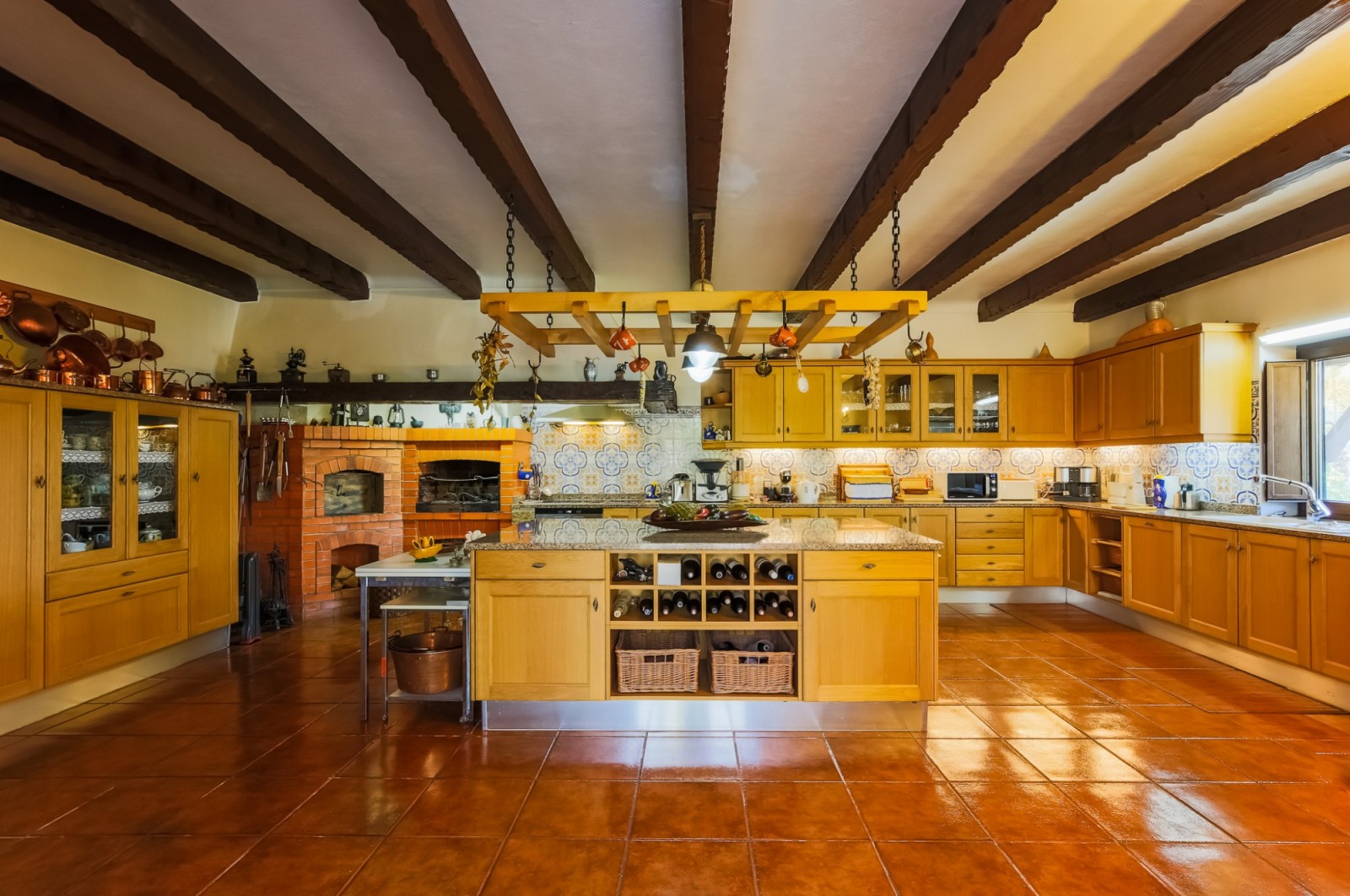 A cozinha regional/contemporânea é capaz de albergar toda a família e amigos no festim de todos quererem colaborar.