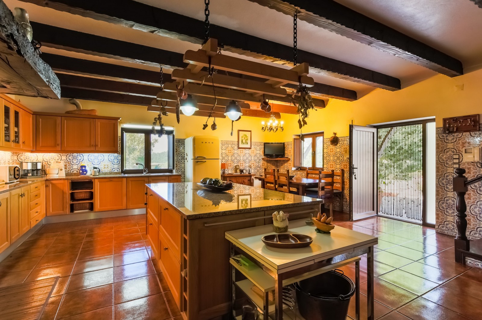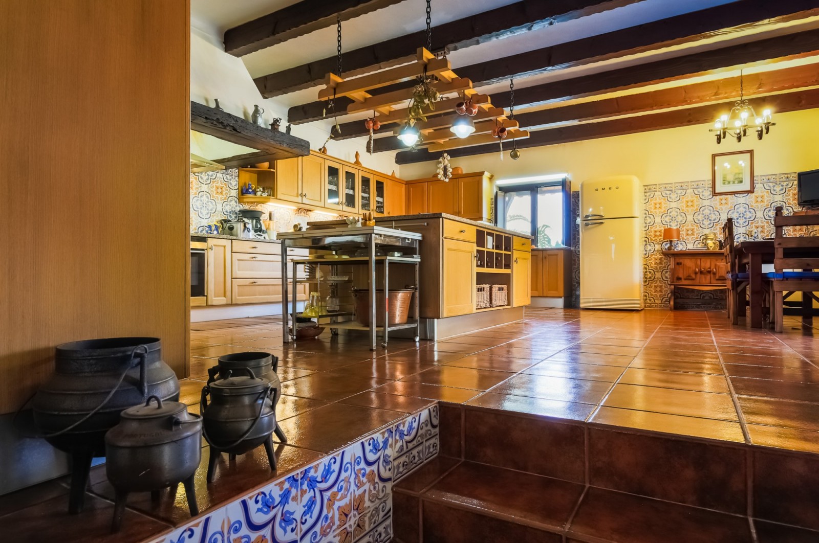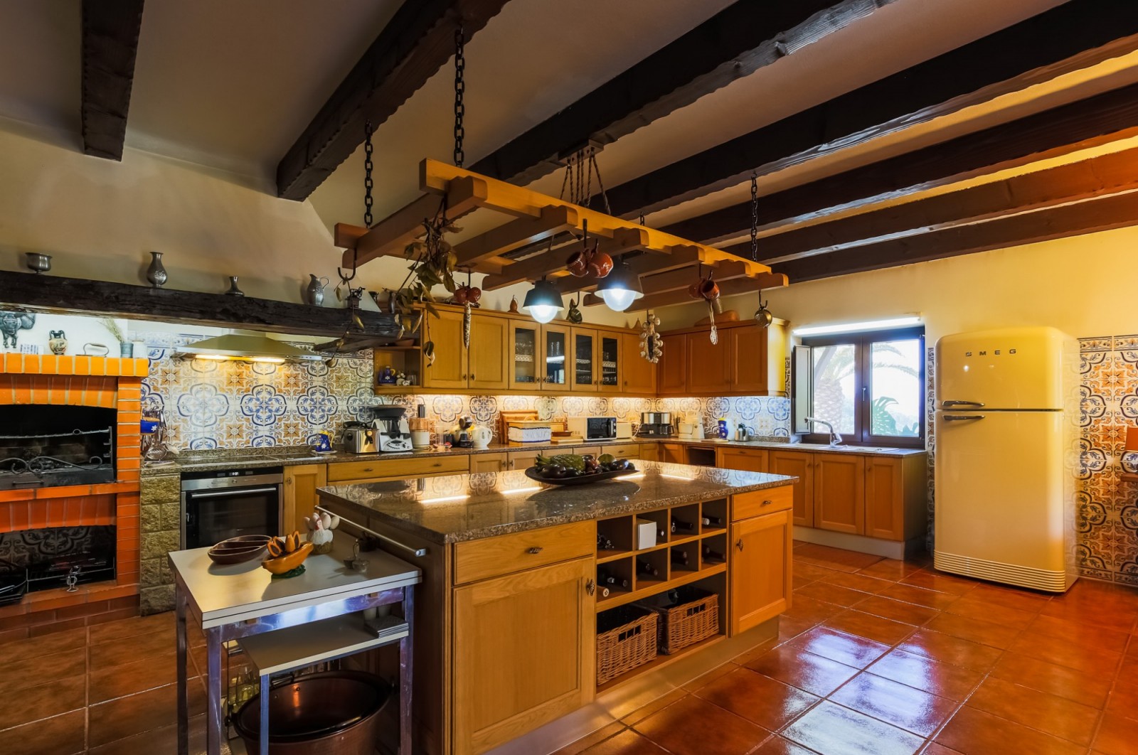 - cozinha marca ALNO totalmente equipada com forno a lenha, forno, placa, máquina de lavar louça, frigorífico marca Smeg.