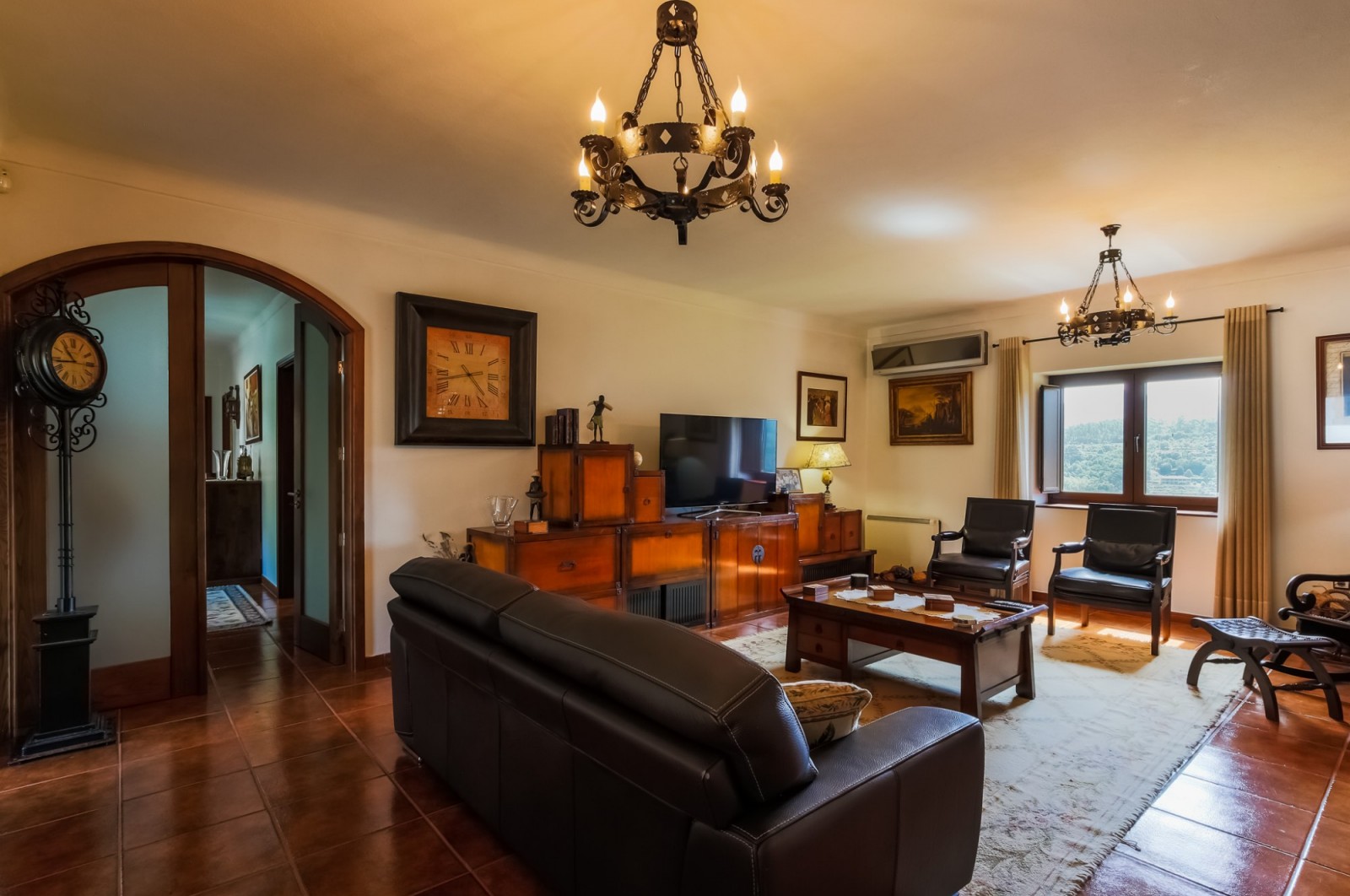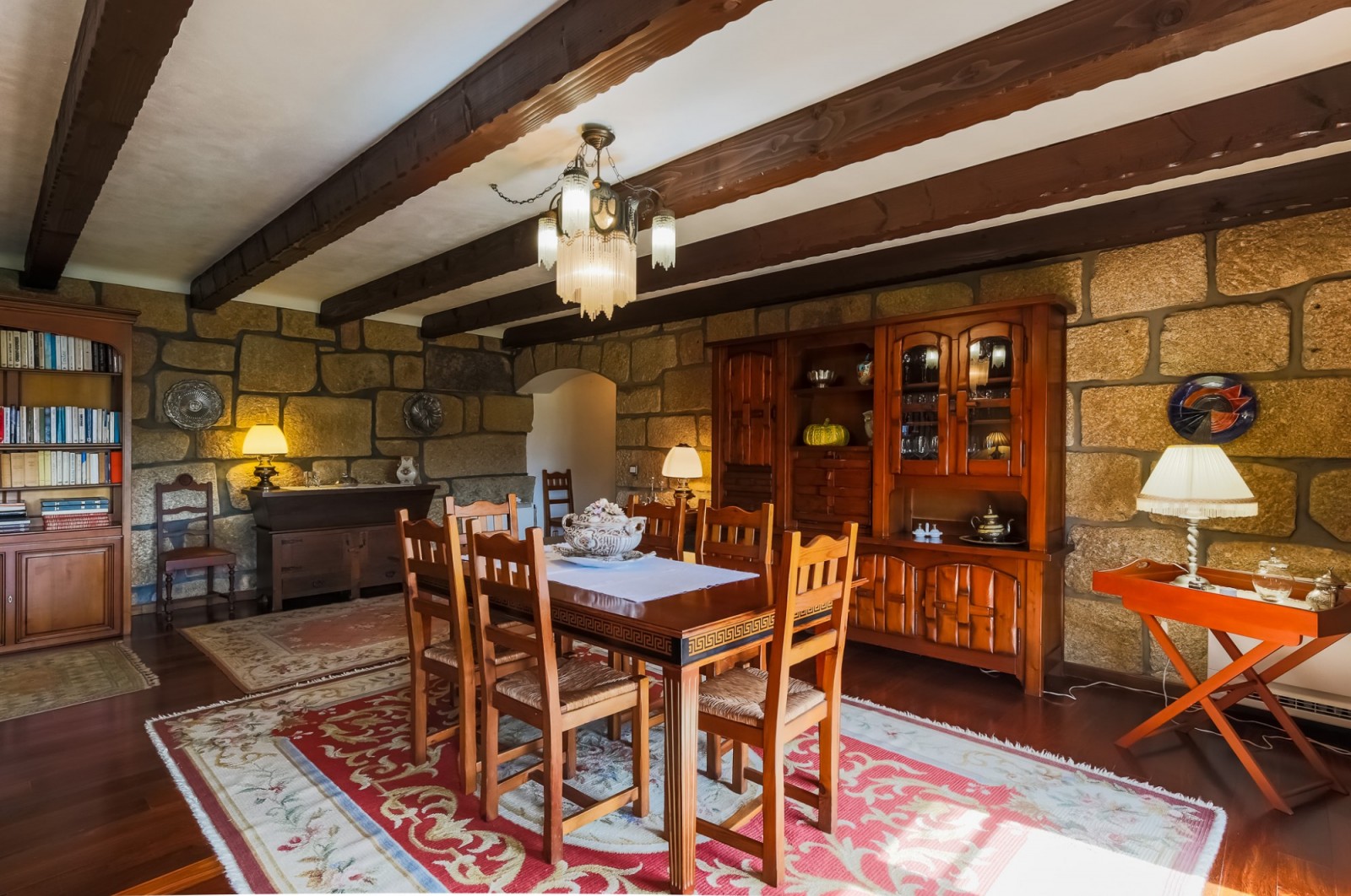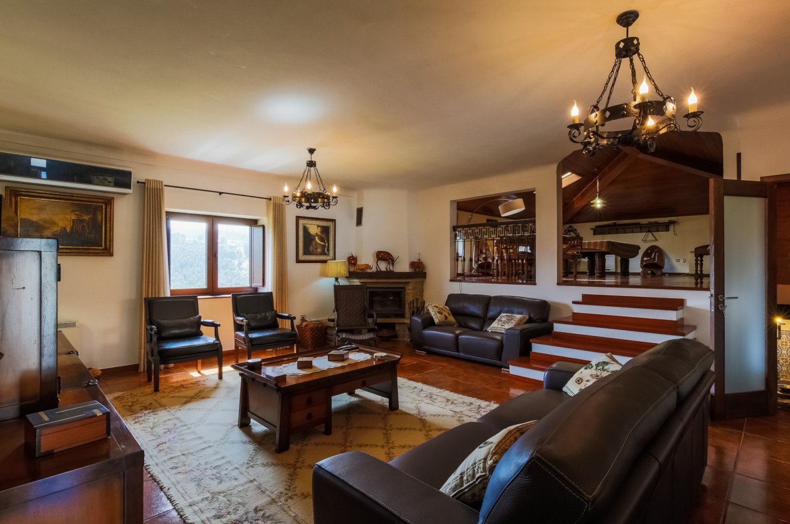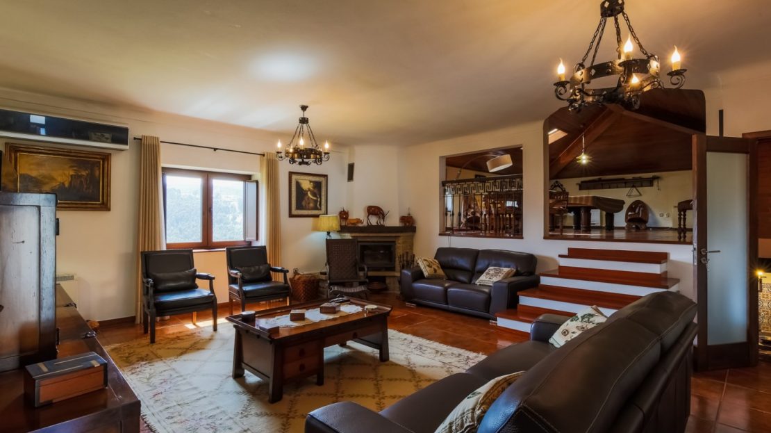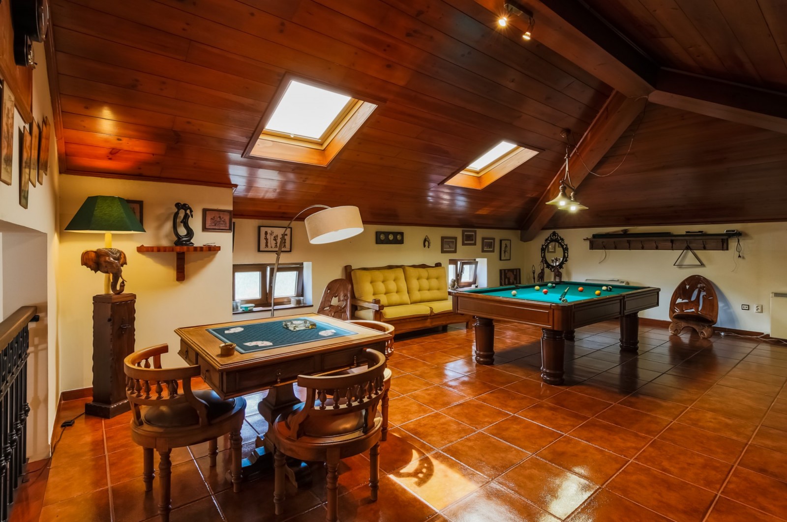- salão de jogos com bar equipado e tecto revestido a madeira com duas clarabóias;
