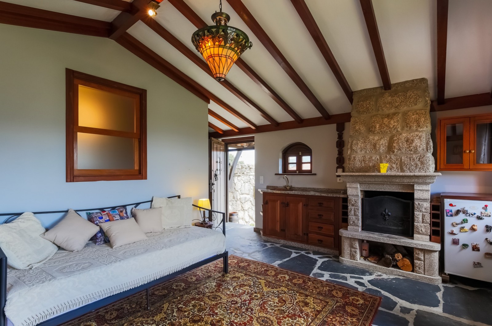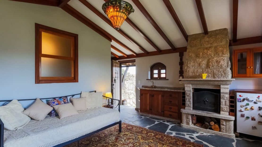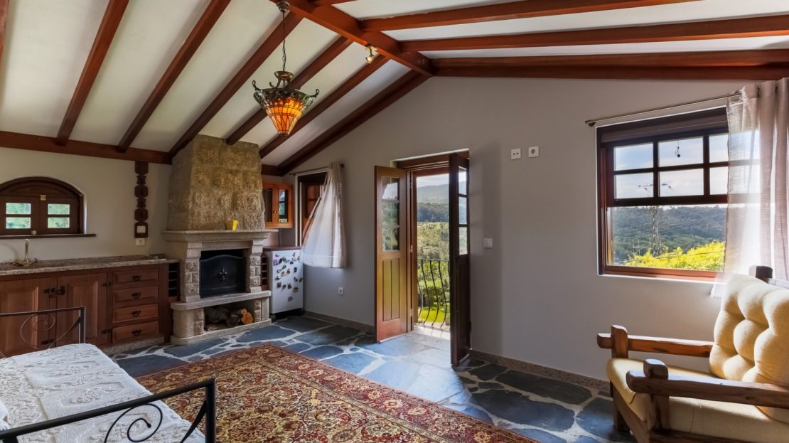 - (1º andar) T0 autónomo com lareira, kitchenette e varanda;