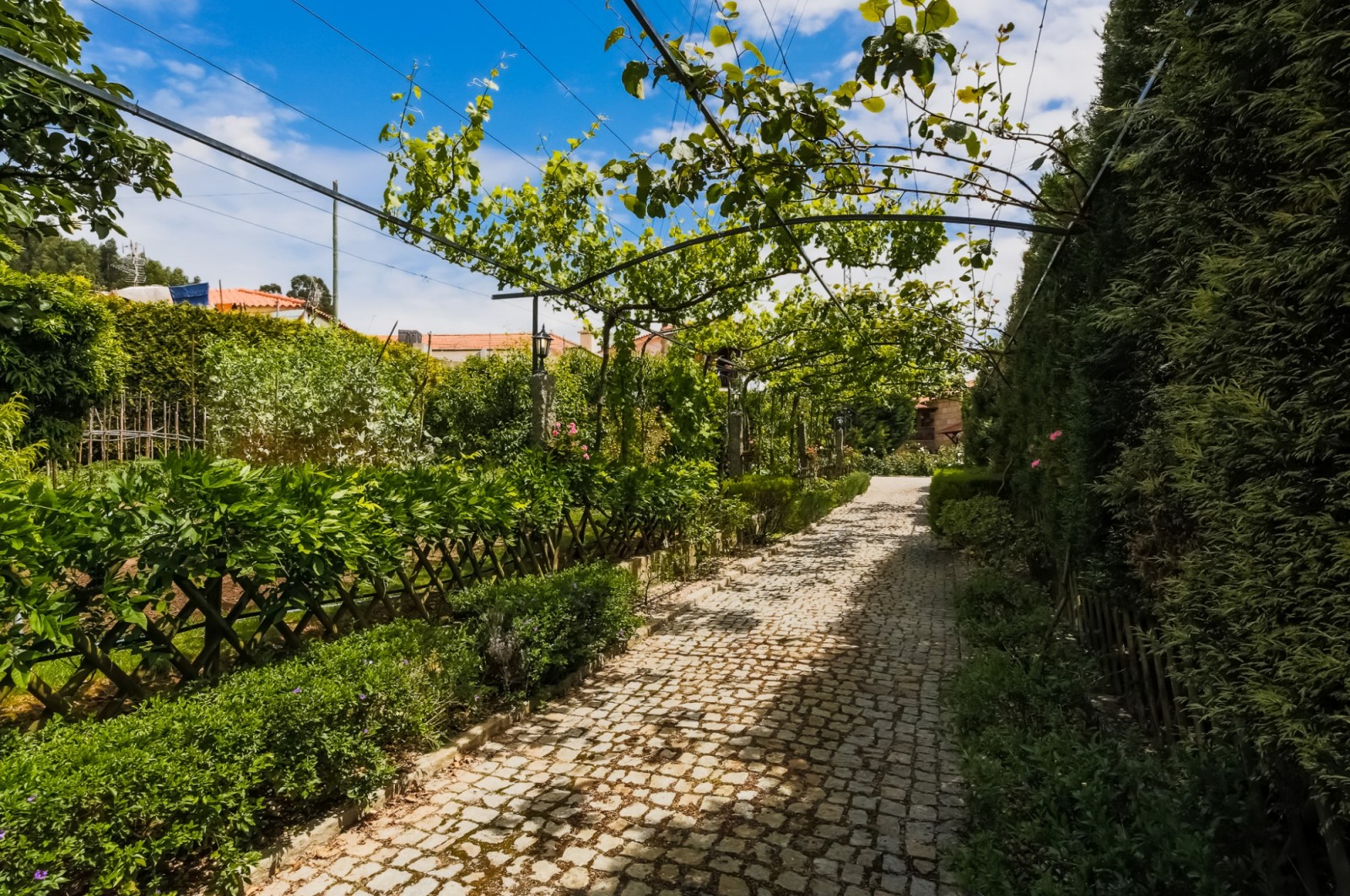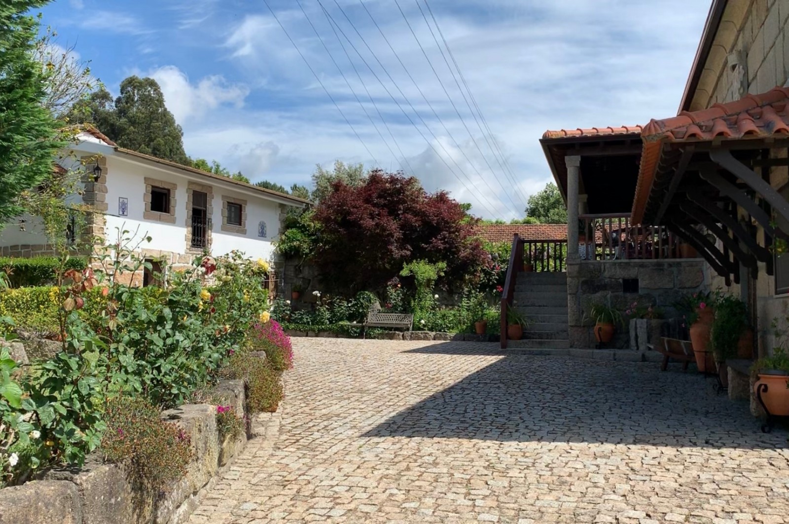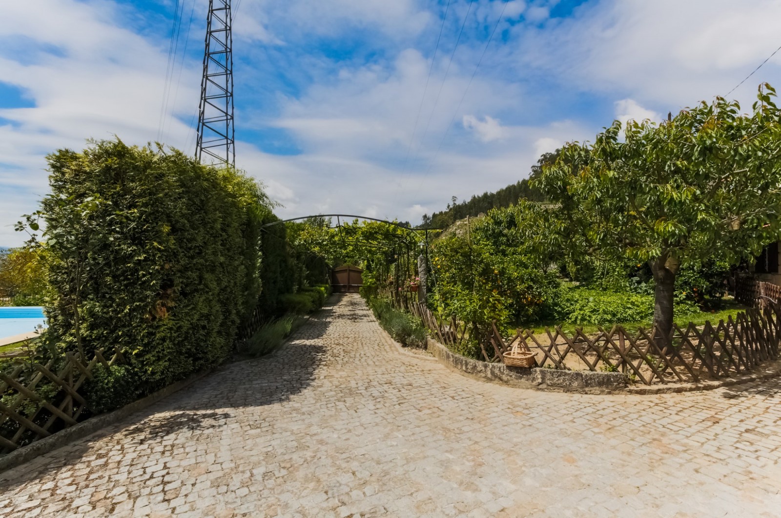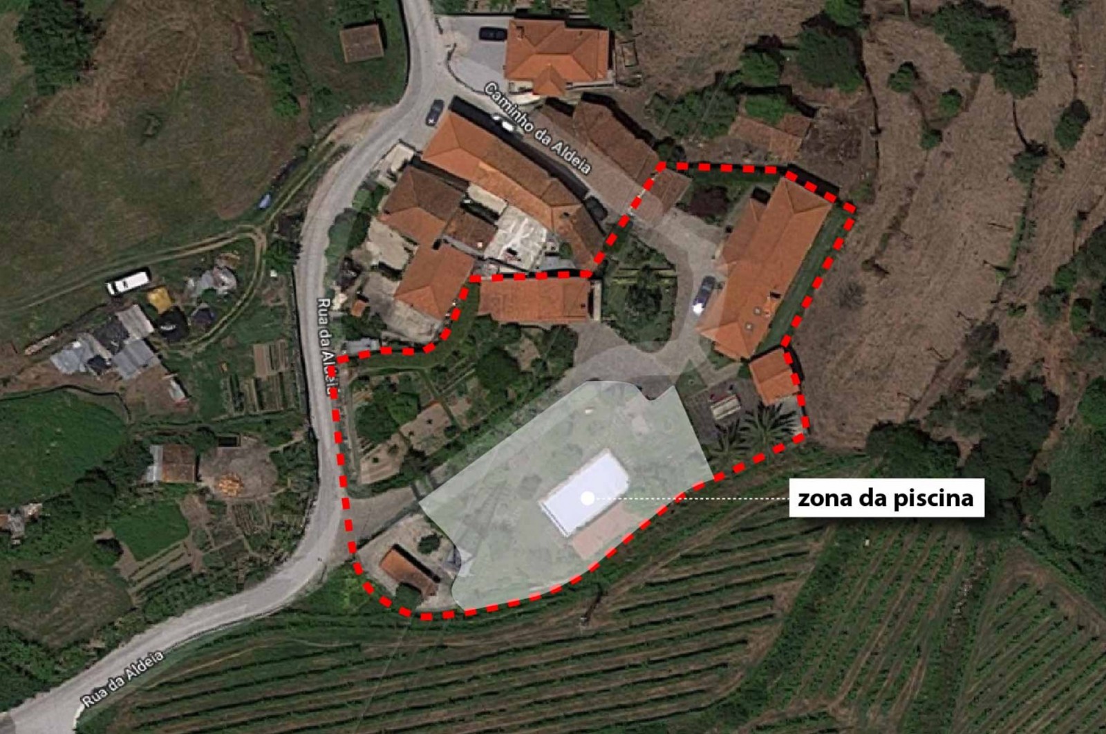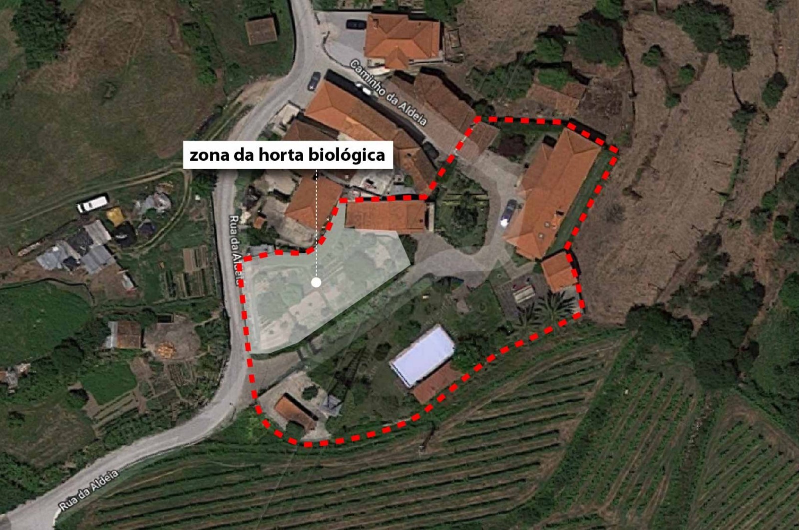 - A principal que atravessa a zona da piscina e da horta biológica, até chegar ao ponto onde as 3 edificações existentes se distribuem;