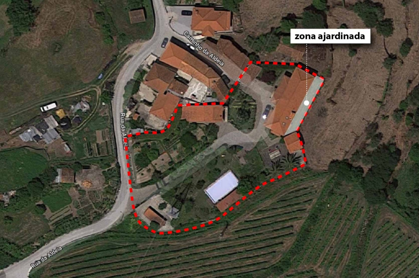 - zona ajardinada que acompanha a edificação principal com acesso pelo salão e pela suite localizadas no r/c.