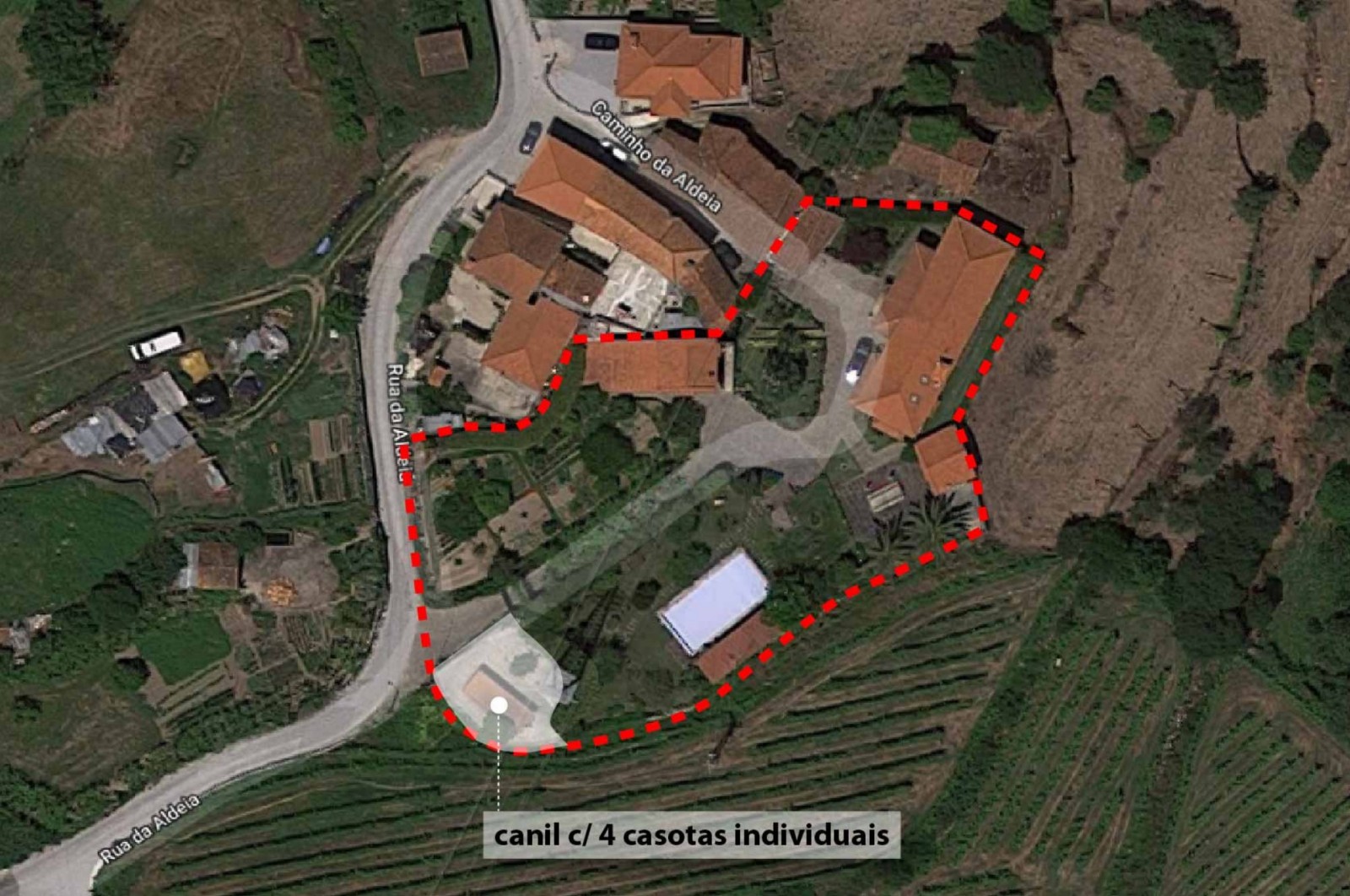 - zona do canil(com 4 casotas em banda, junto à entrada a poente);
