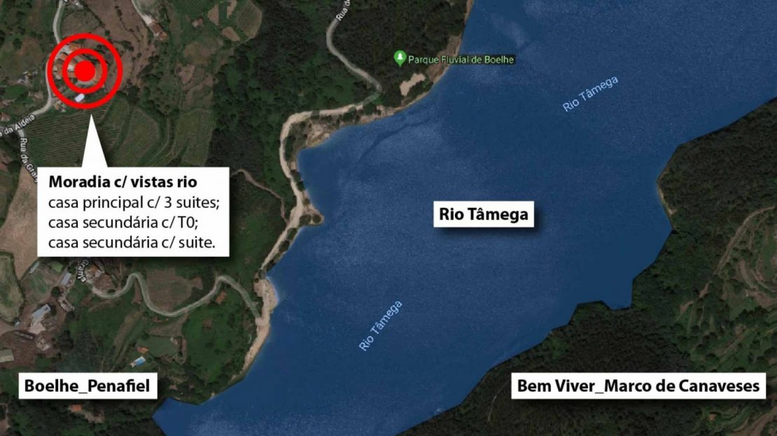 Localizada em Boelhe, na margem norte do rio Tâmega, esta é uma moradia tradicional que se debruça sobre o rio, tirando partido das vistas que estas coordenadas proporcionam.