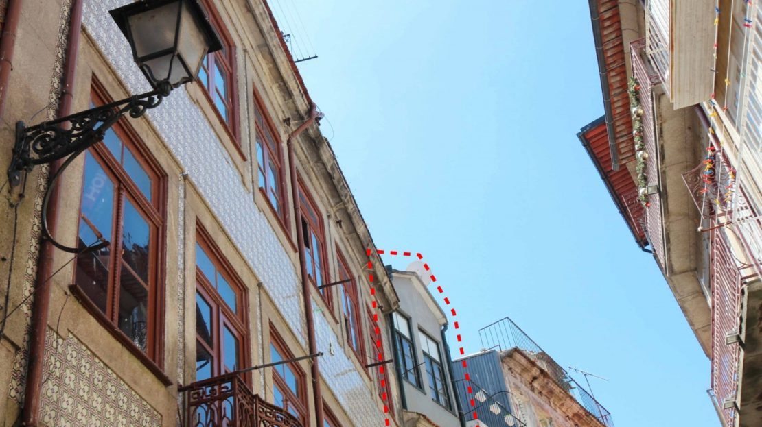 Em pleno centro histórico do Porto, este prédio faz parte da malha de telhados apertados da paisagem aérea do nosso distinto “Património Mundial”.