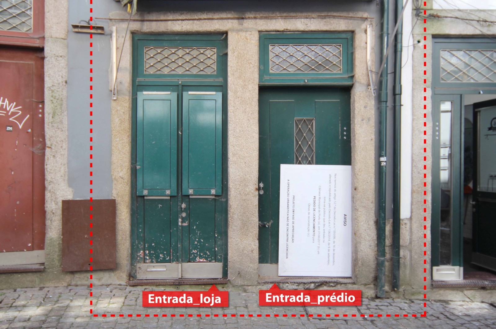 Encontrando-se na Rua da Bainharia, numa rua pedonal que ainda admite o acesso automóvel, este prédio assiste à passagem de milhares de turistas e residentes entre a Rua Mouzinho da Silveira e a zona da Sé.