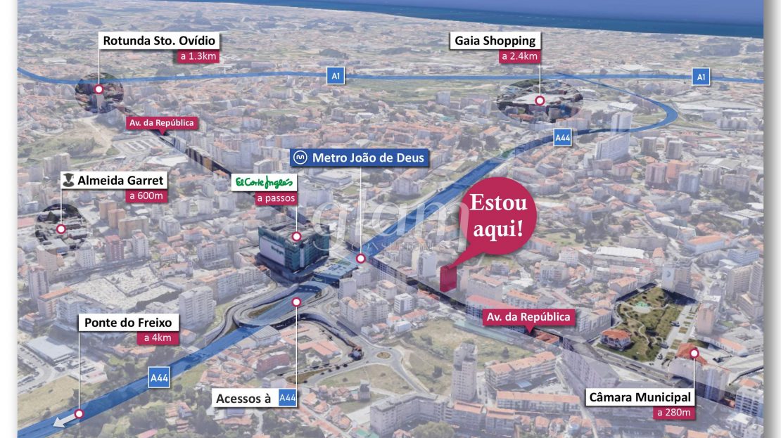 - a 280m de distância da Câmara Municipal de V.N. Gaia;