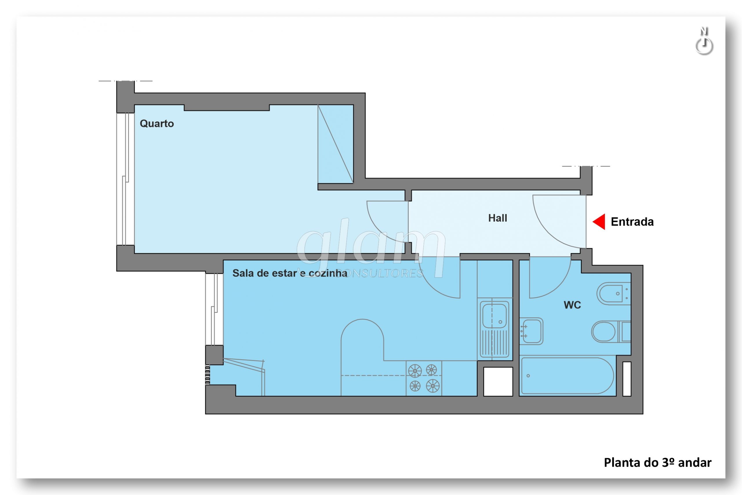 Localizado no 3º andar, este apartamento tira partido da orientação solar poente, esquivando-se ainda ao alvoroço de movimento, do qual se despede assim que entra no prédio.