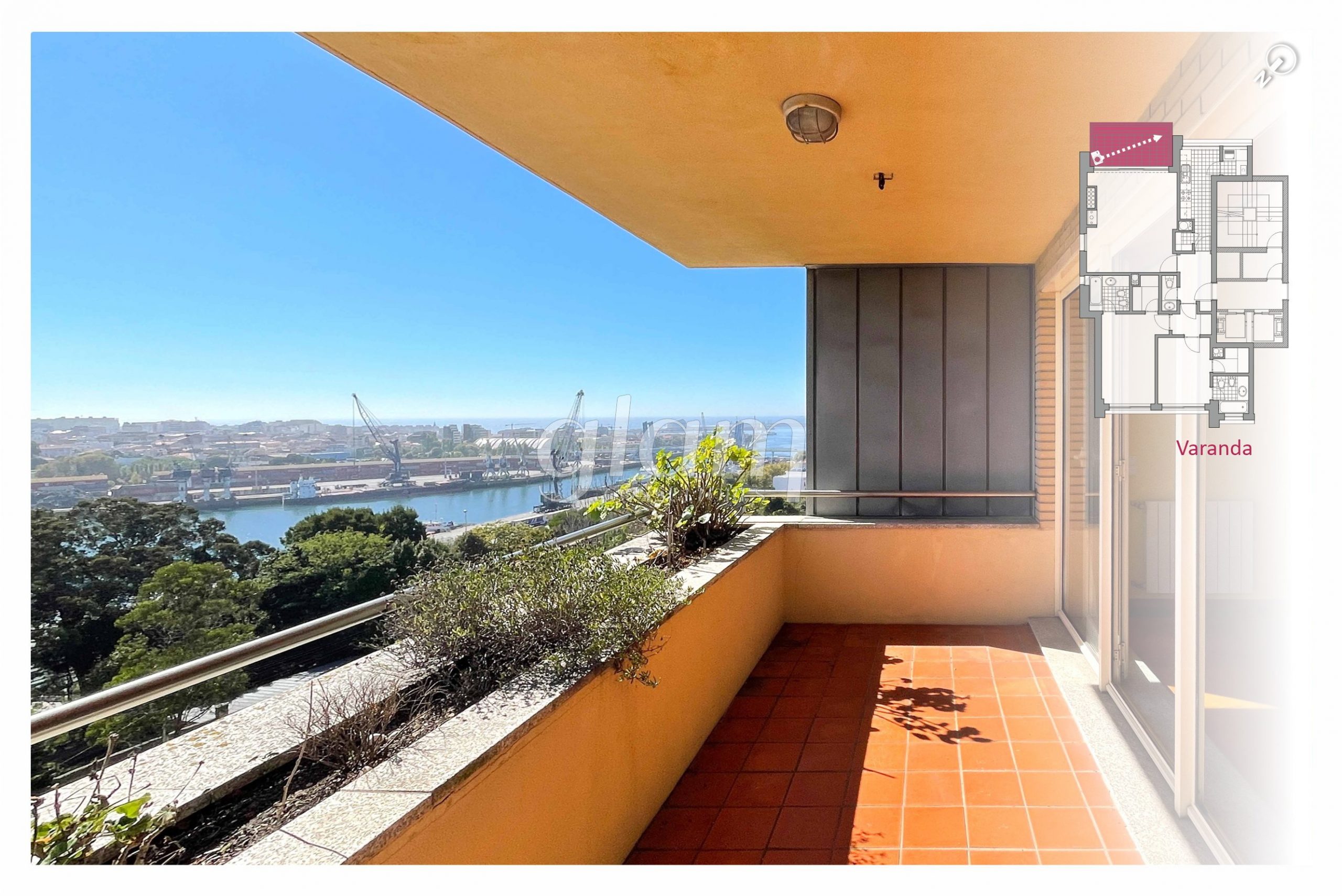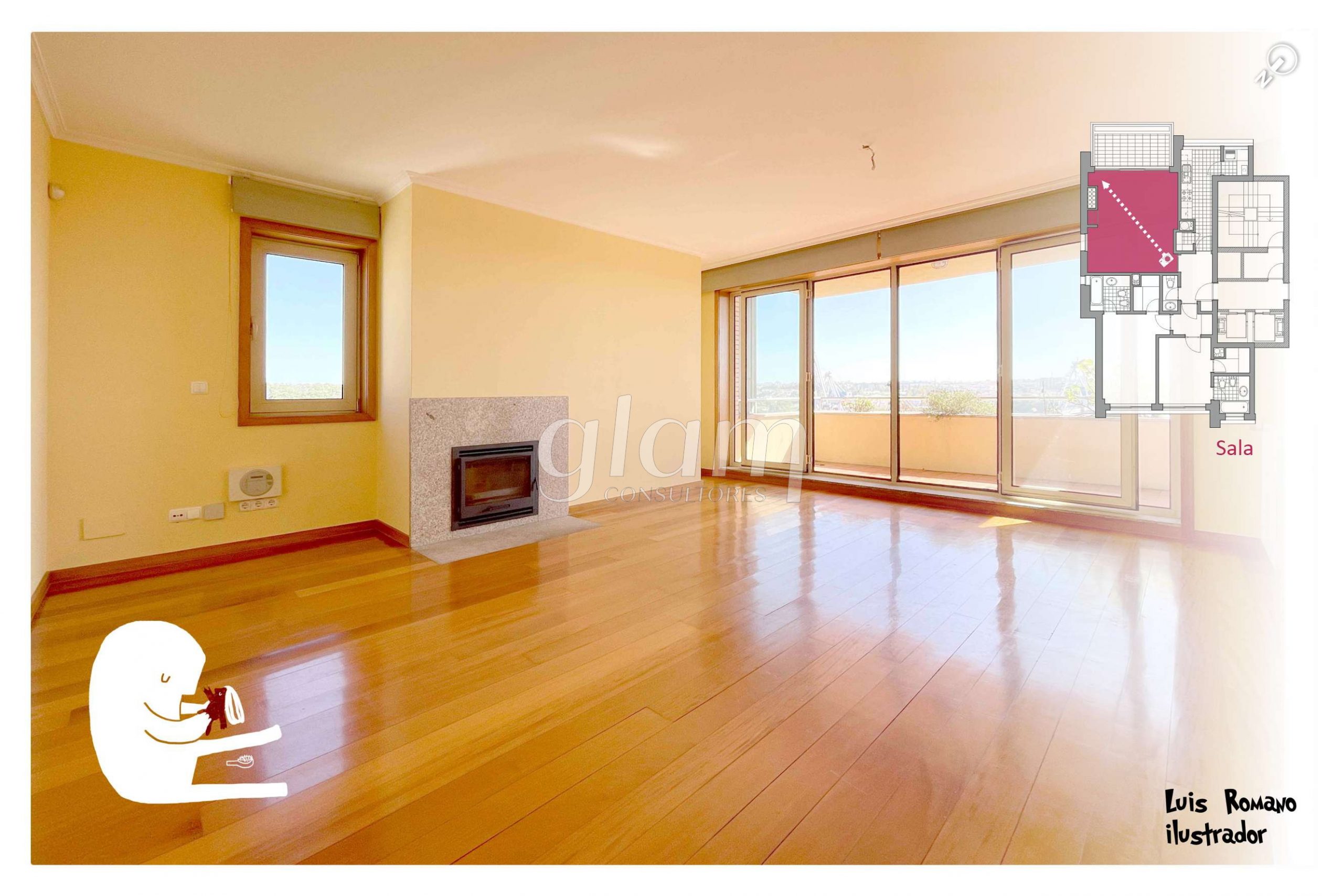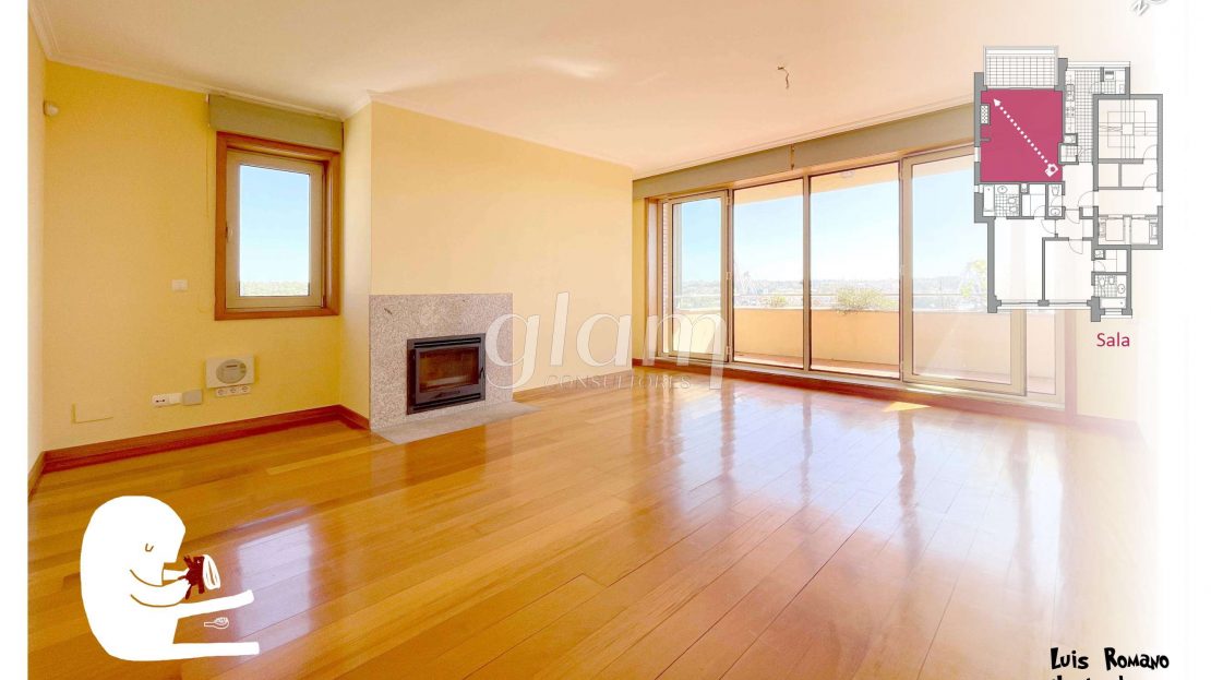 - Sala de estar com recuperador de calor e acesso a uma varanda com vistas rio e mar;