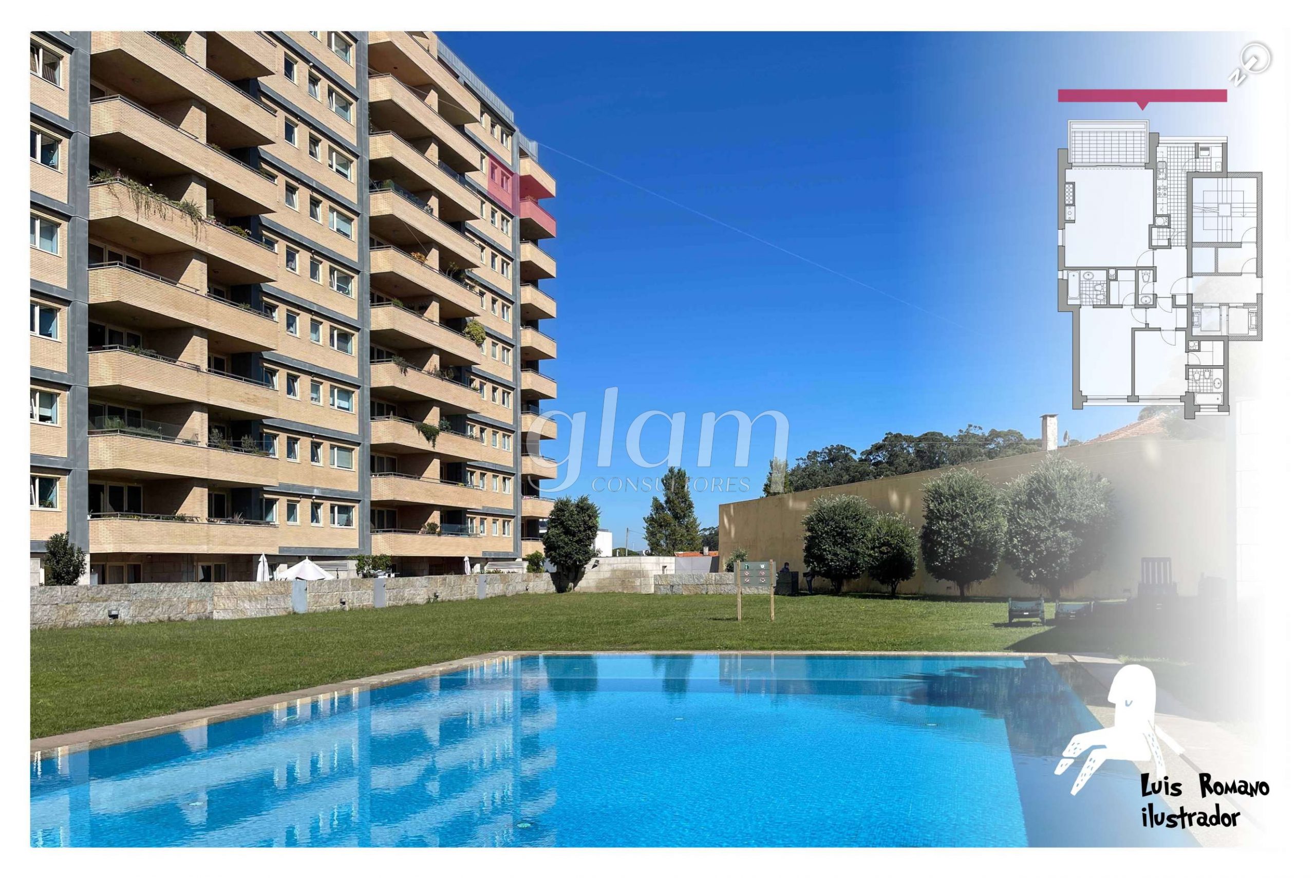 Entre a Quinta da Conceição e a Quinta de Santiago, estabelece-se este bloco habitacional constituído em condomínio fechado com jardim e piscina.