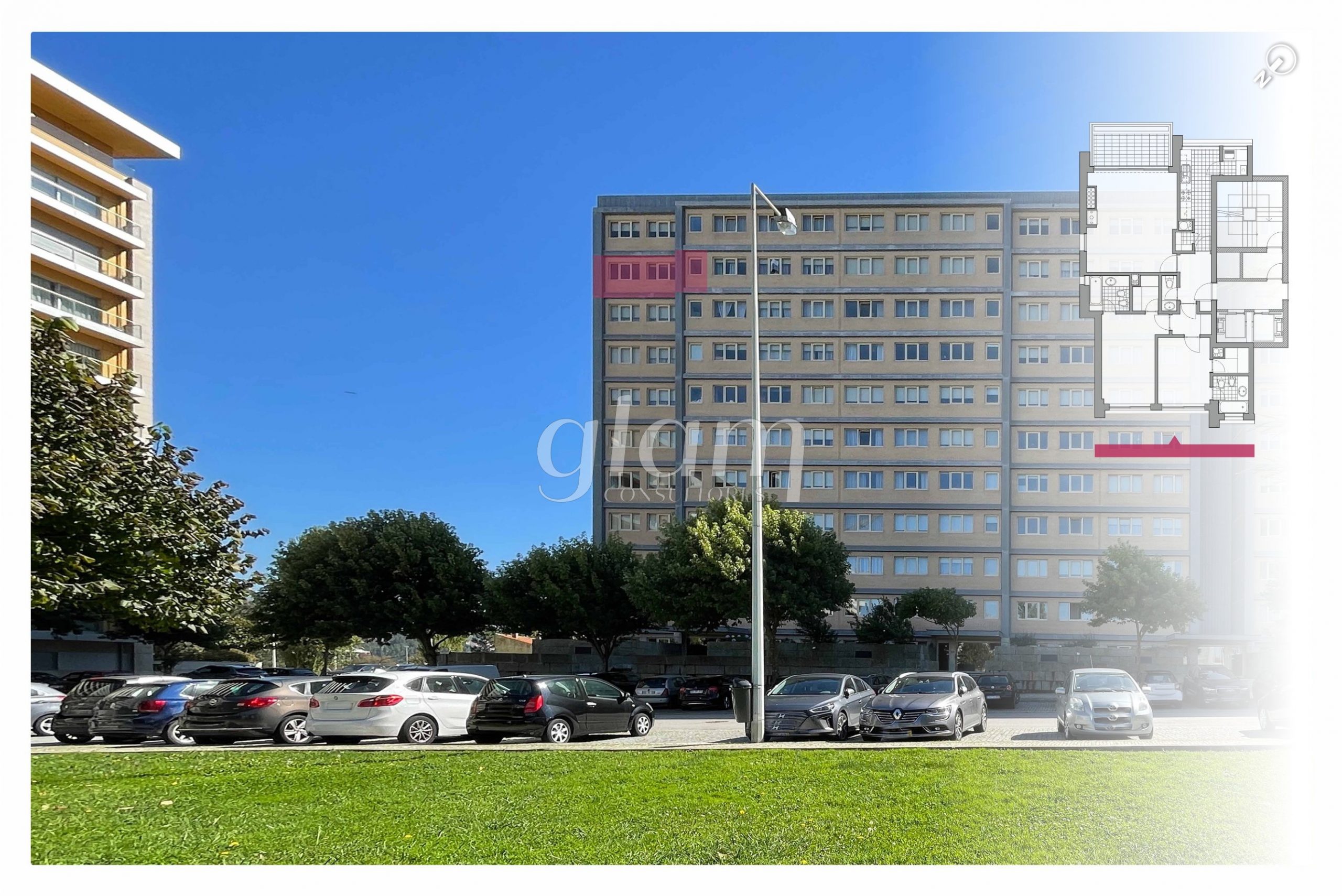 Apartamento inserido no 9.º andar (penúltimo) do topo nascente do bloco horizontal do empreendimento Entre Quintas.