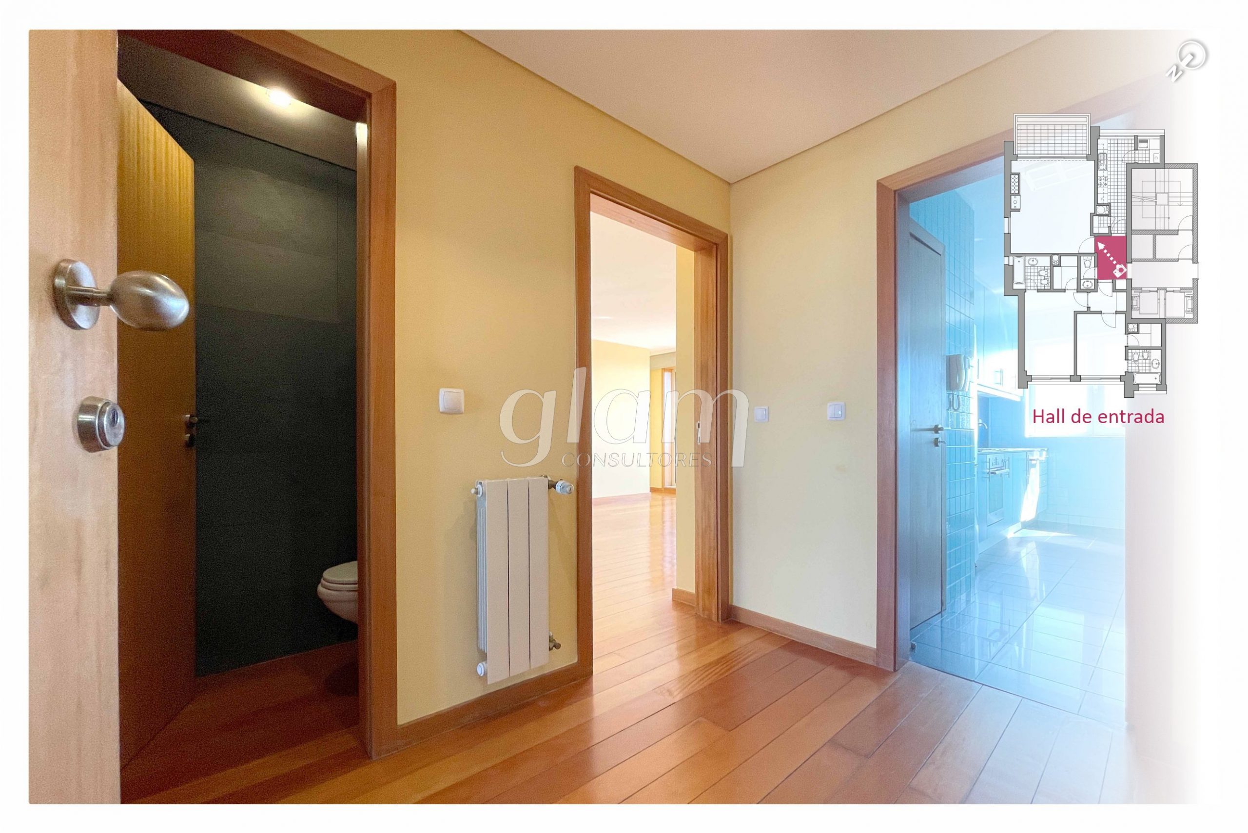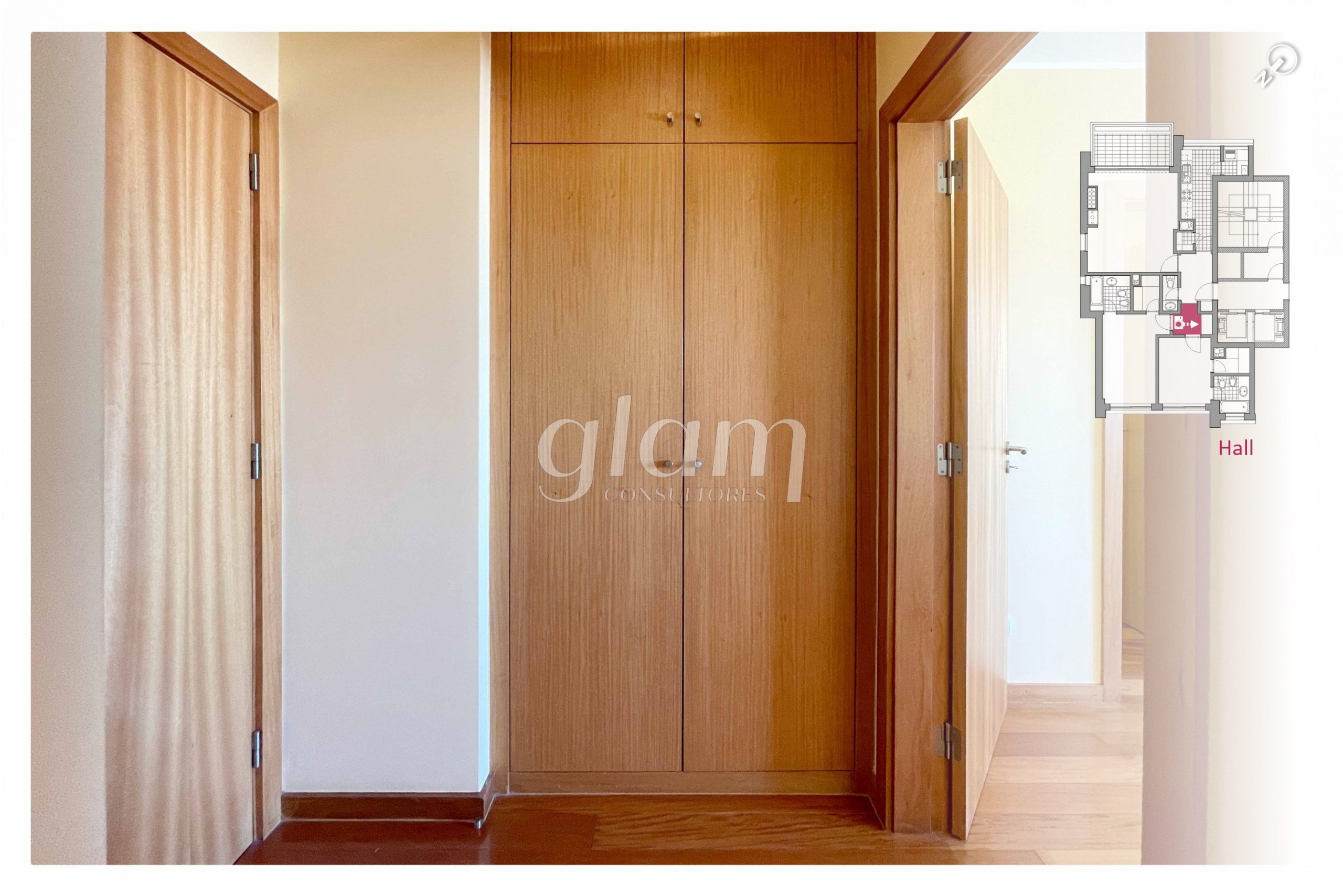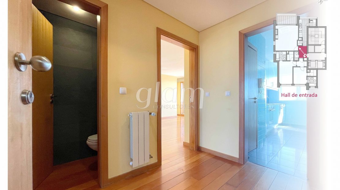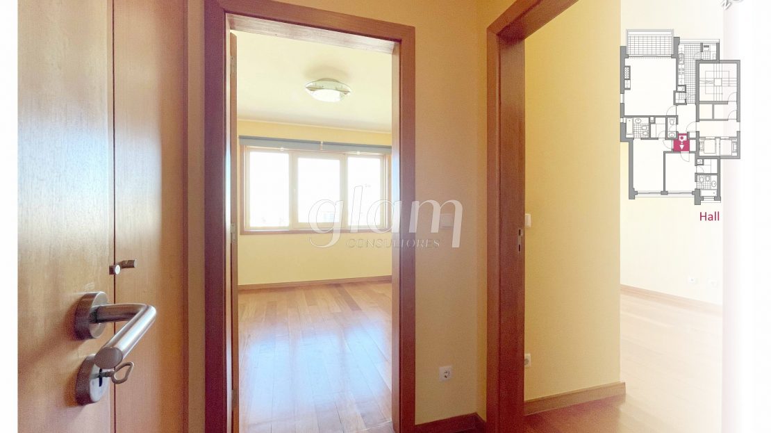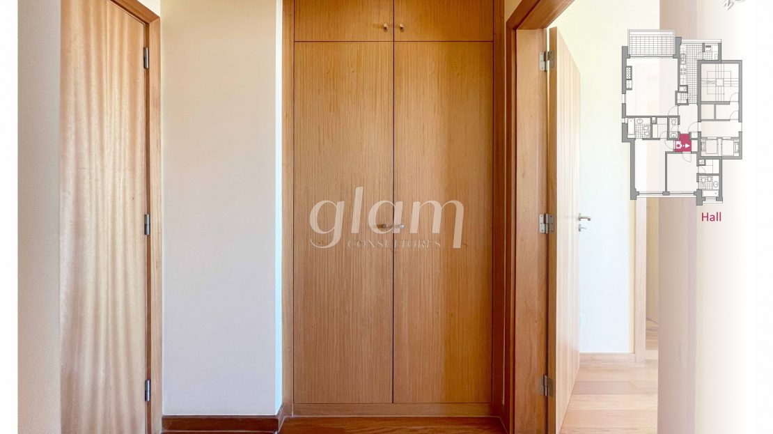 - Hall de distribuição na zona privada com roupeiro embutido;