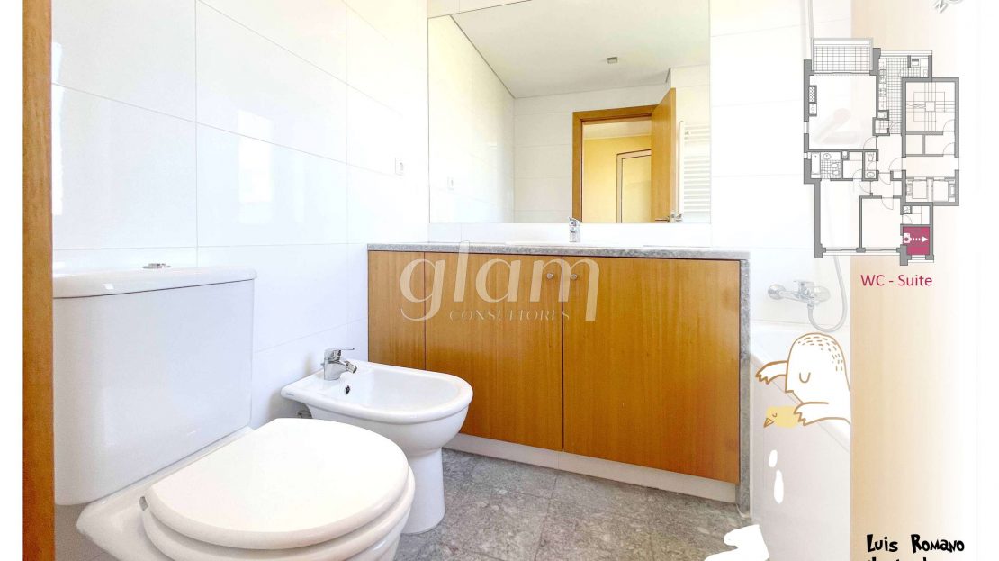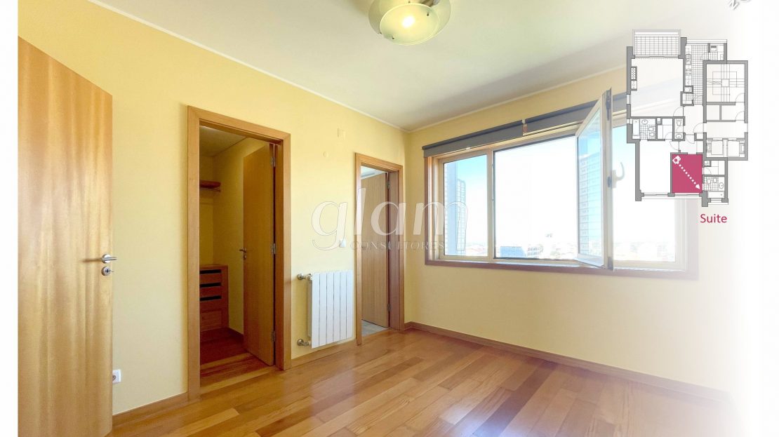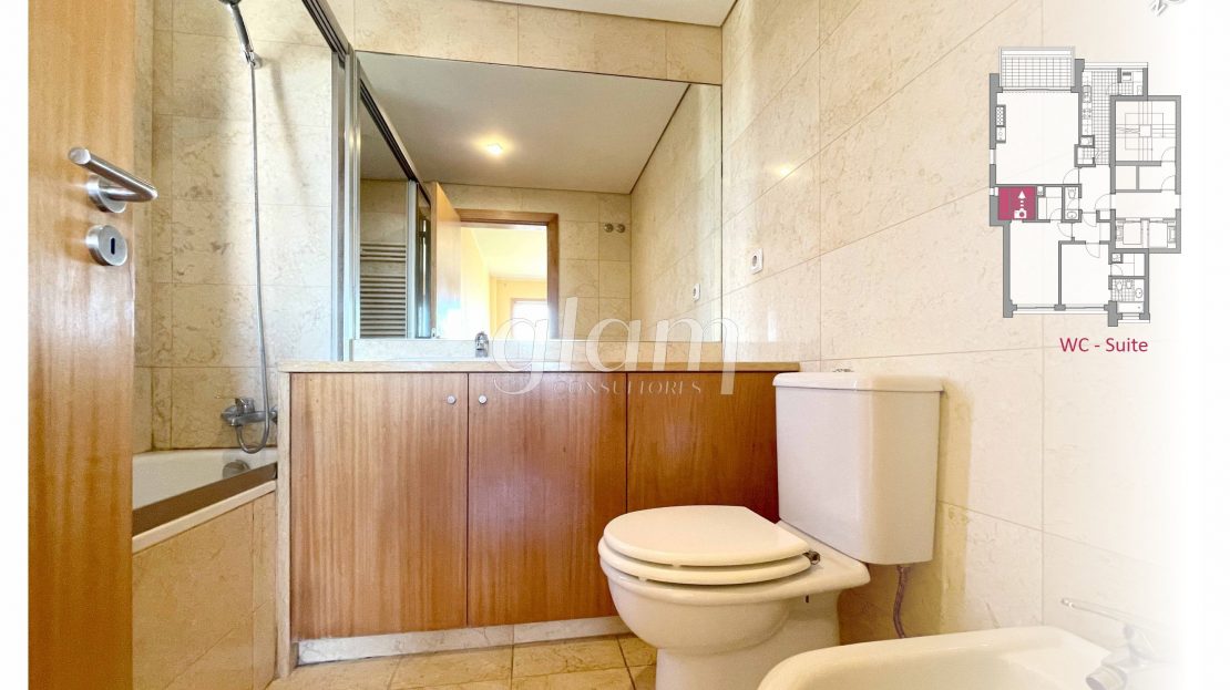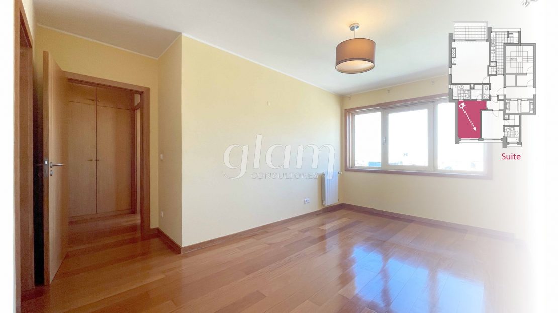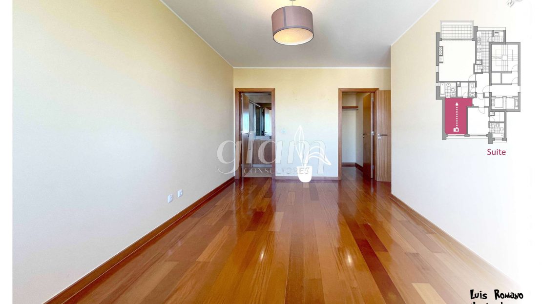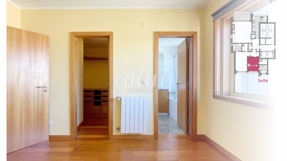 - Suite orientada a nascente com casa de banho completa com banheira, luz natural e closet;