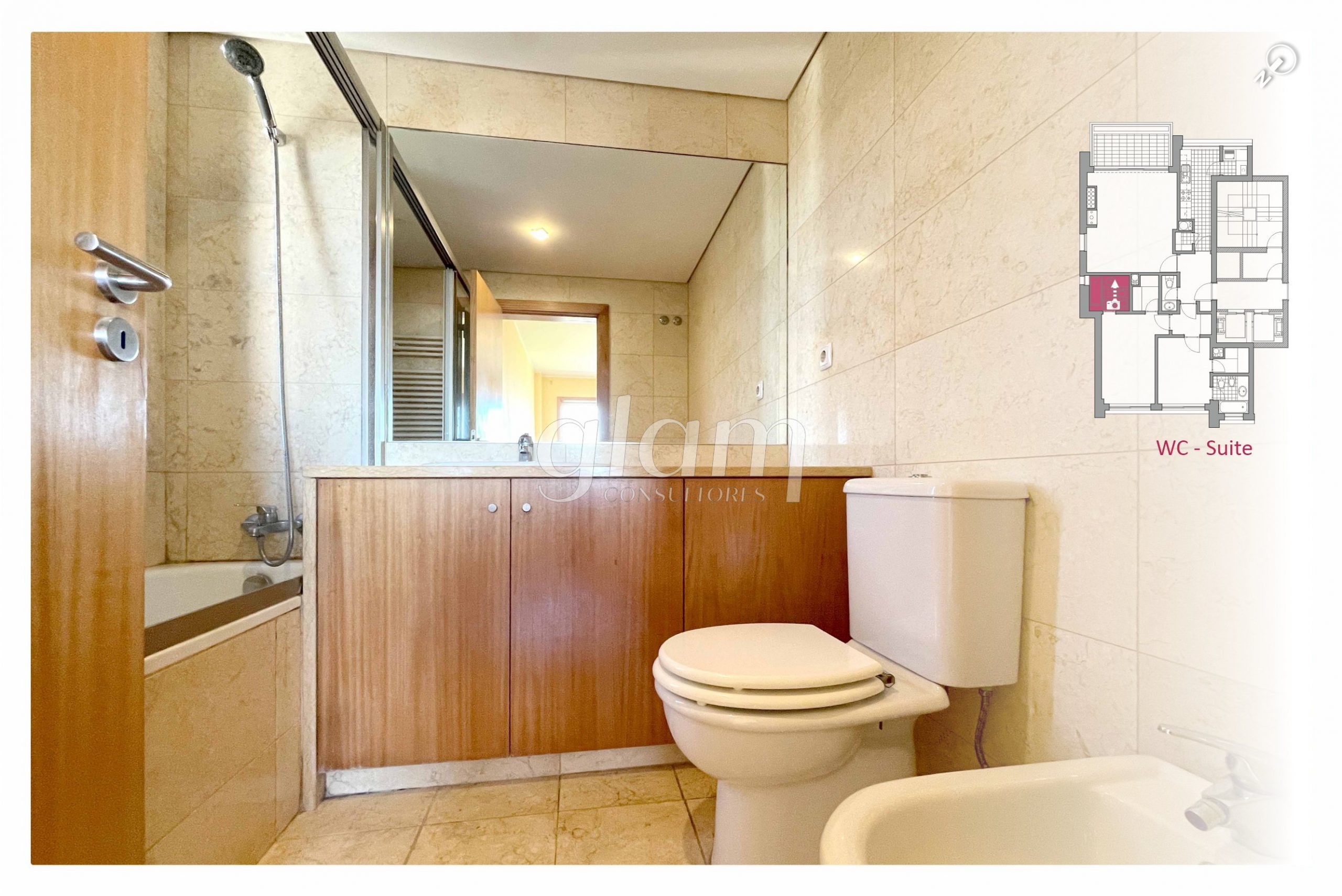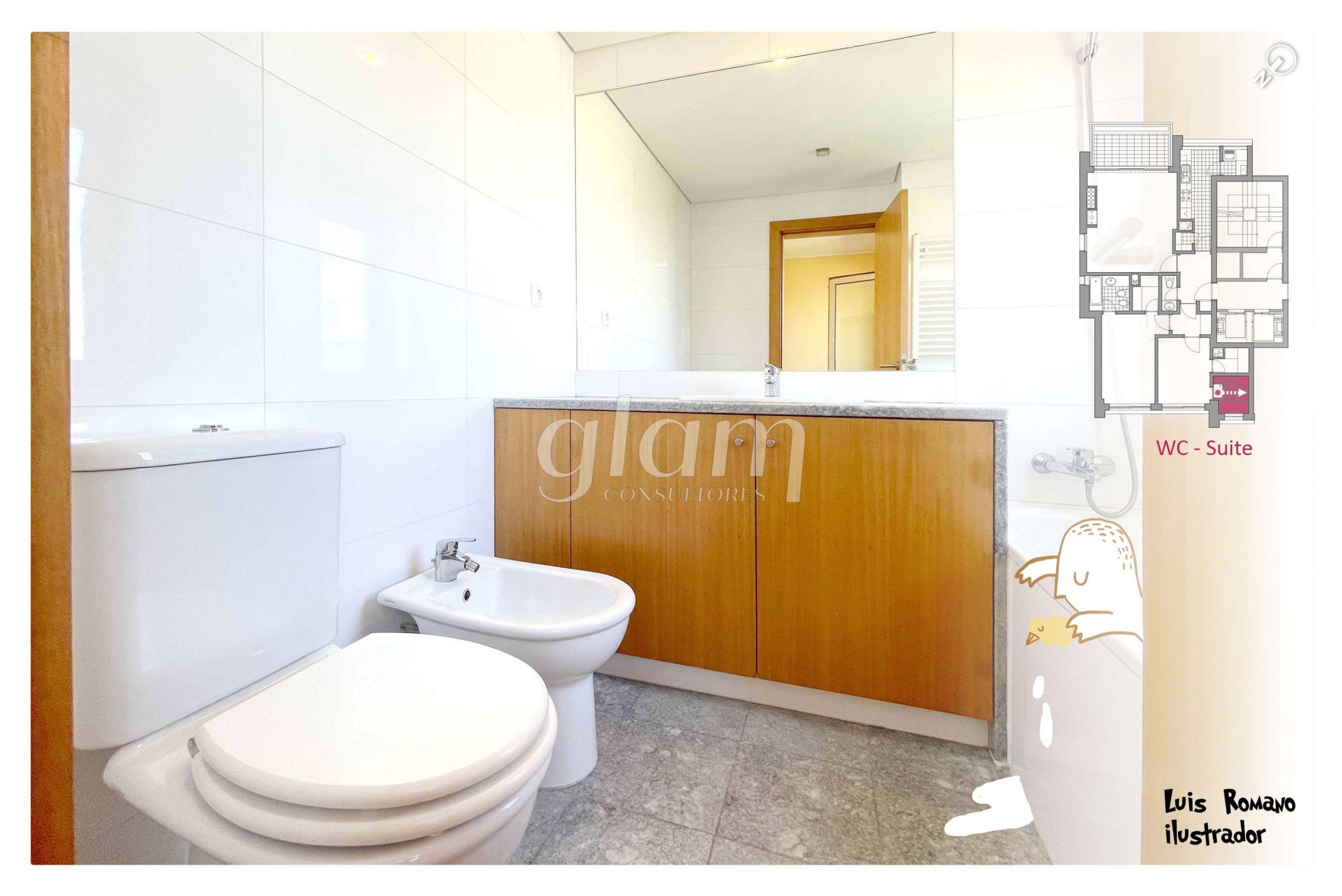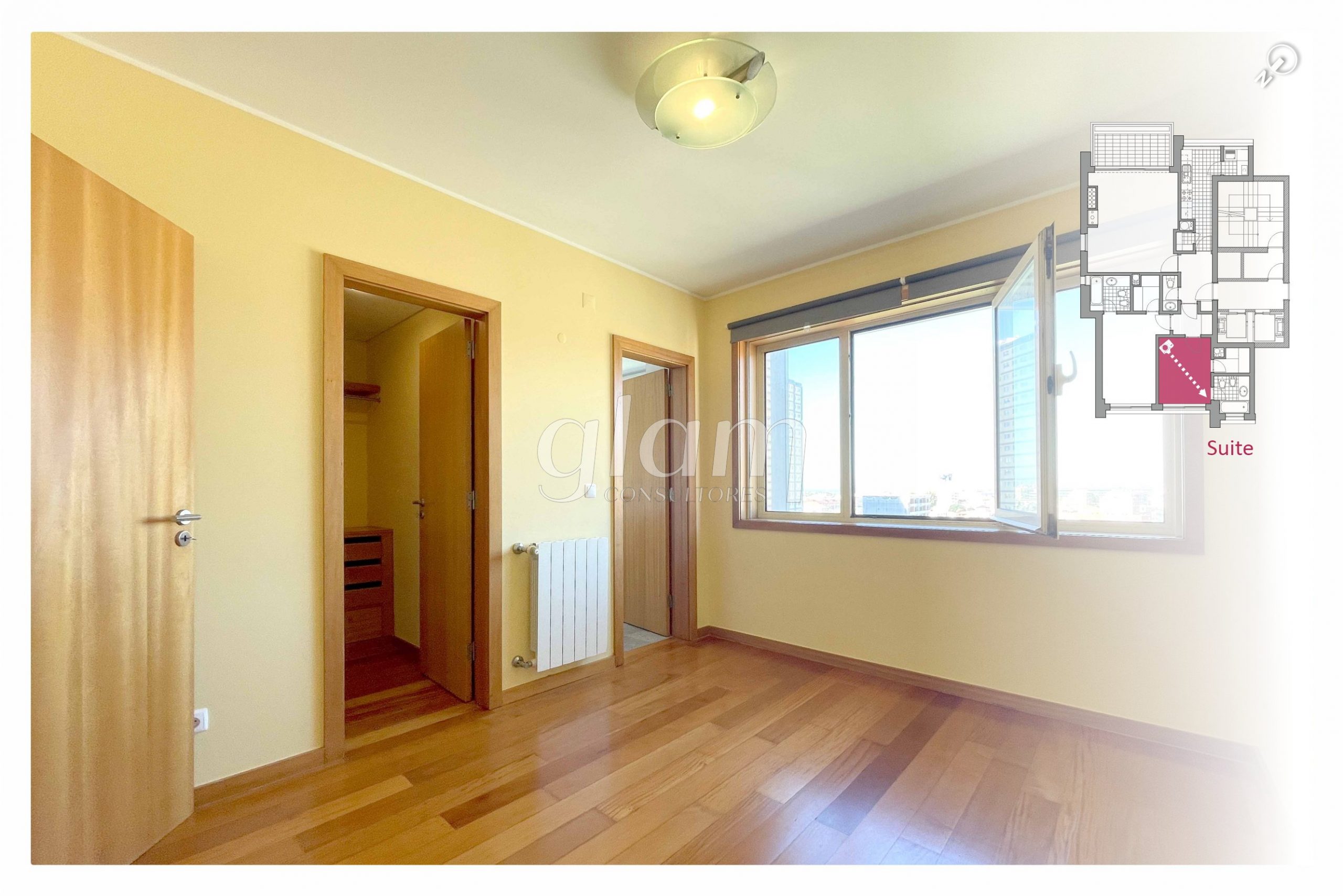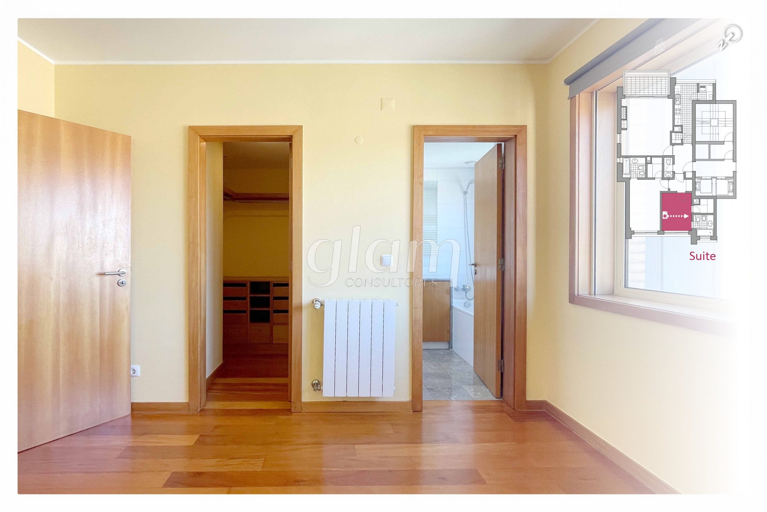 - Suite orientada a nascente com casa de banho completa com banheira, luz natural e closet;