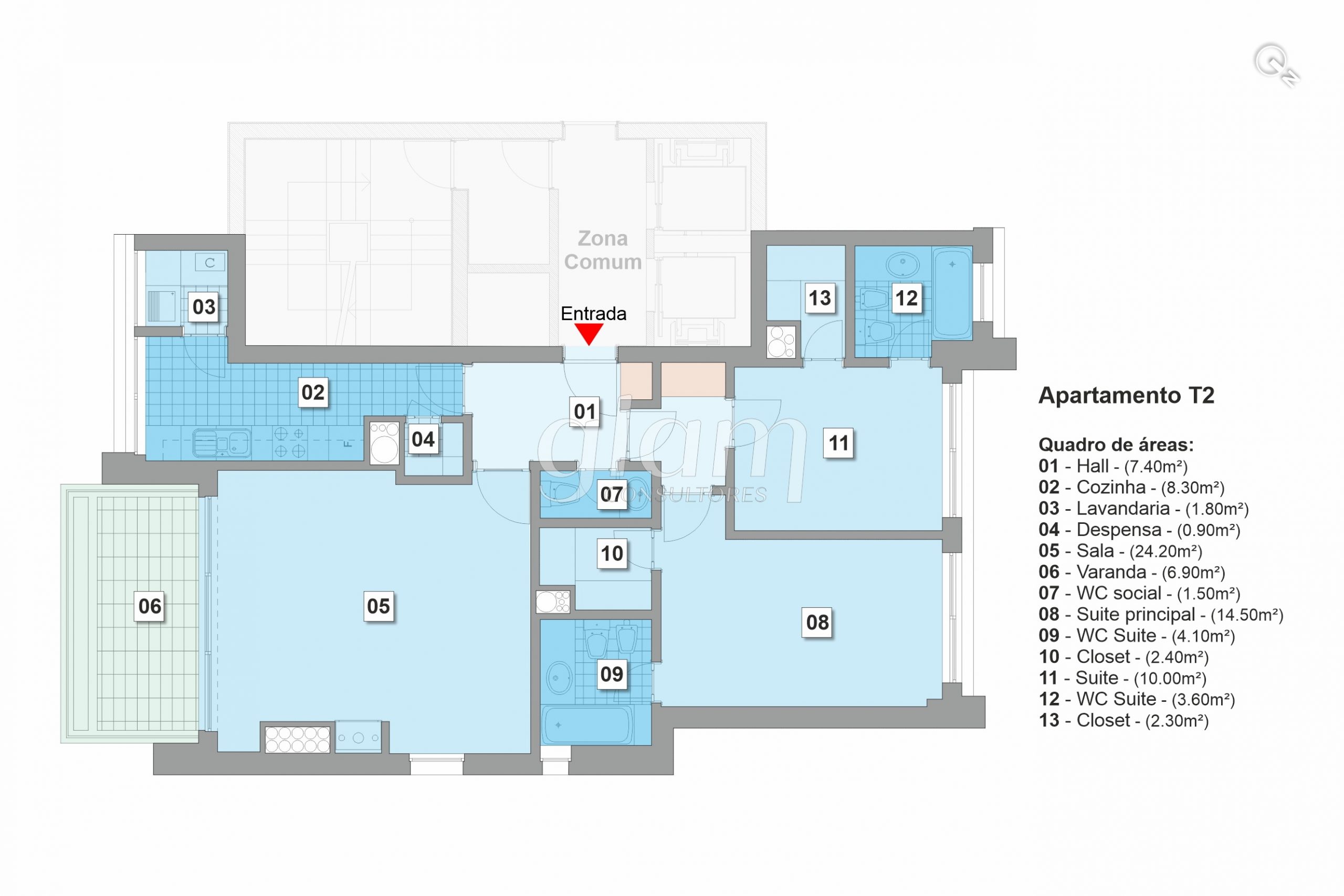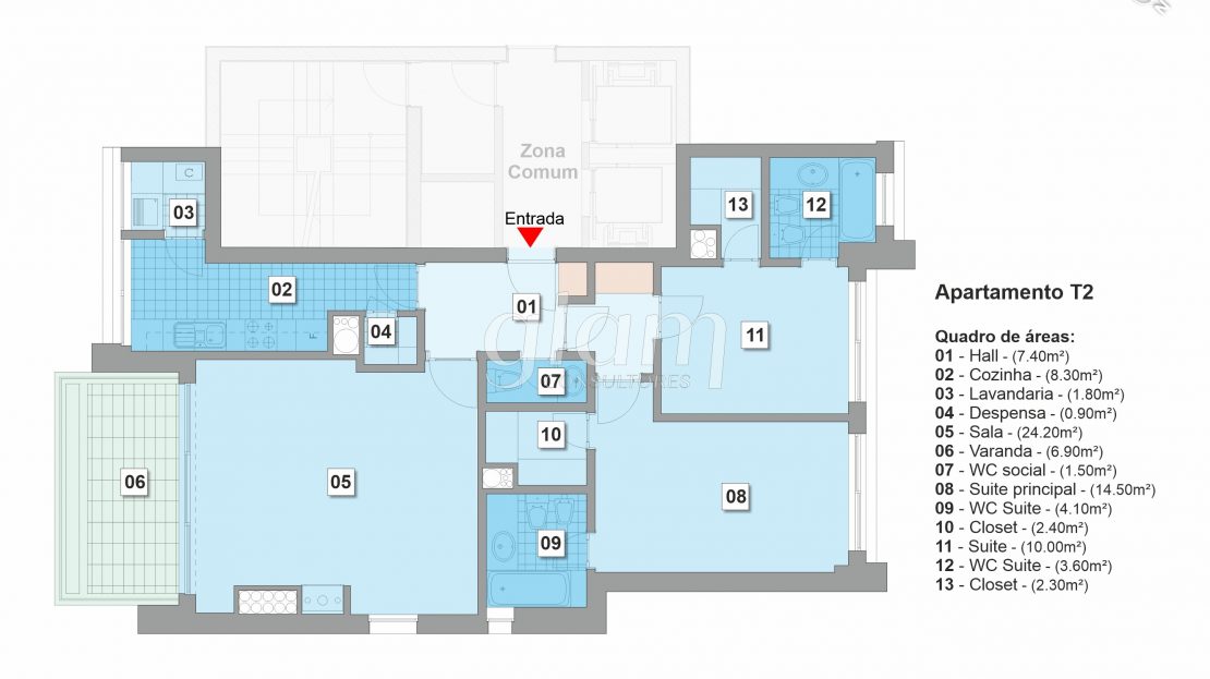 apartamento T2 em condomínio fechado;