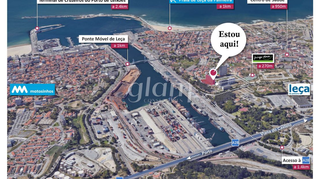 - a 950m de distância do “Centro de Saúde de Leça da Palmeira – Usf Maresia”;