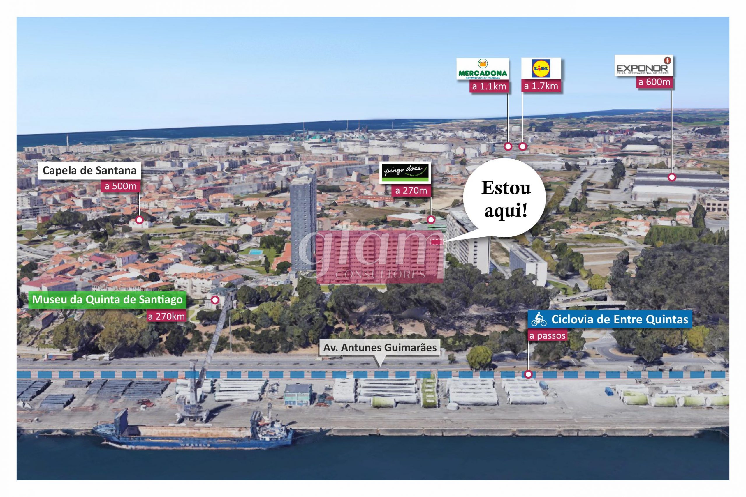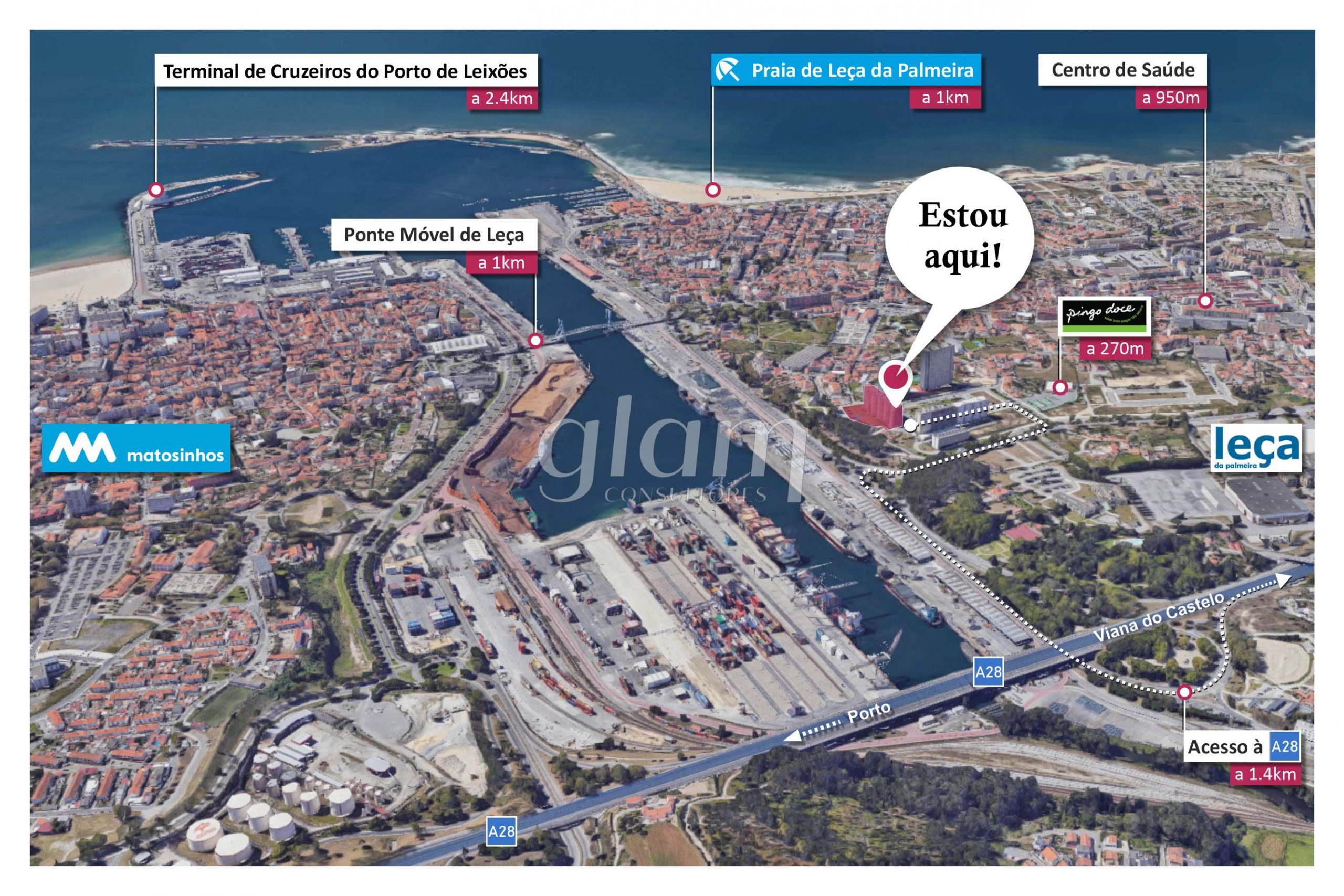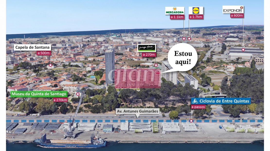 - a 270m de distância do “Pingo Doce de Leça da Palmeira – Amorosa”;