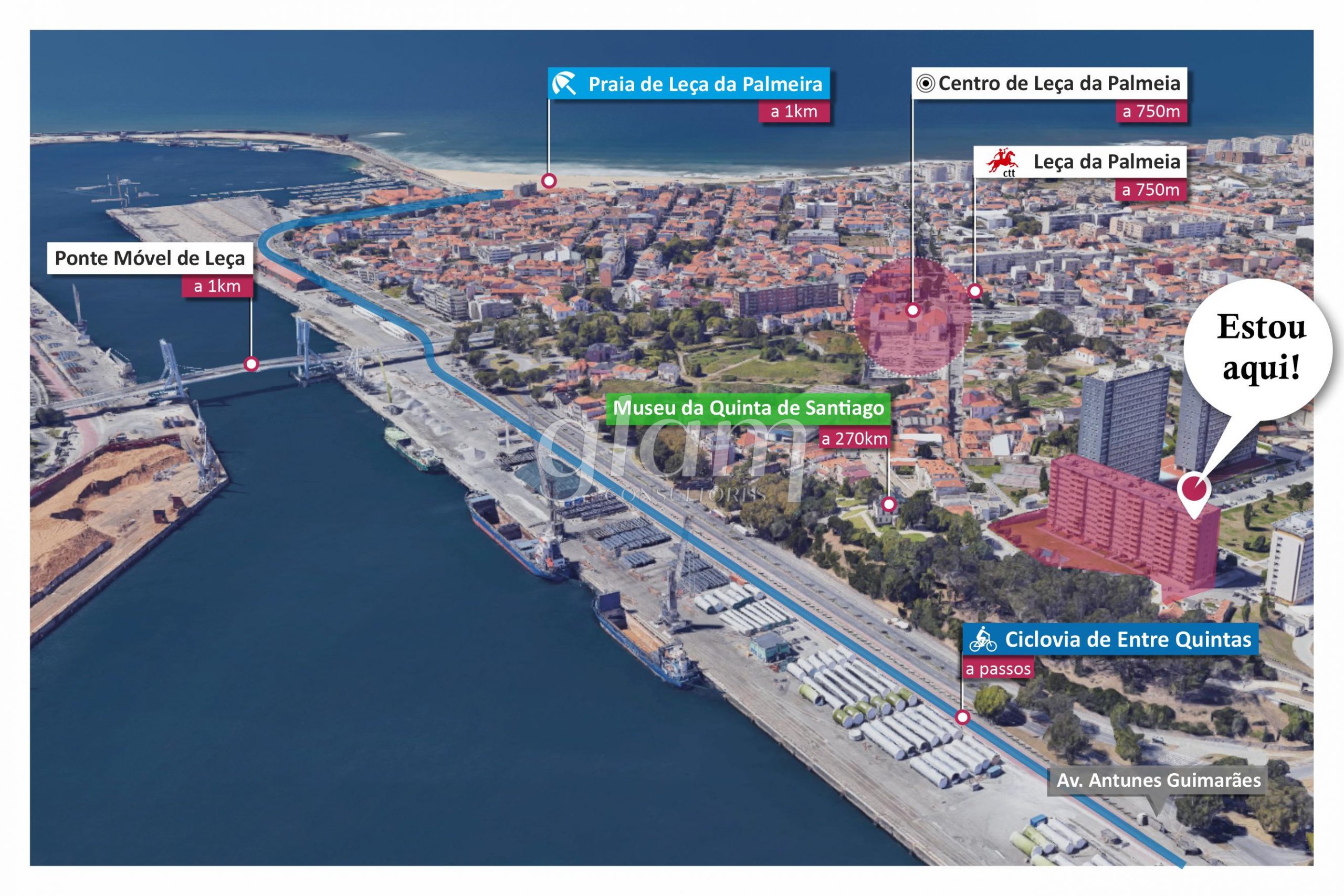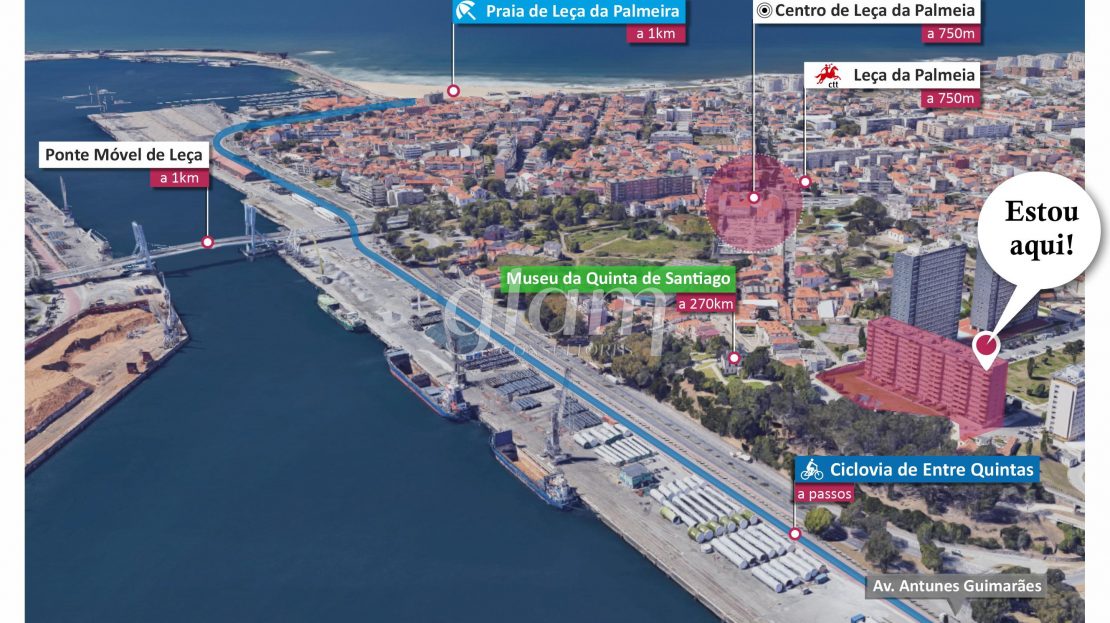 - a 1km de distância da Ponte Móvel de Leça;