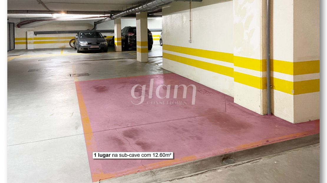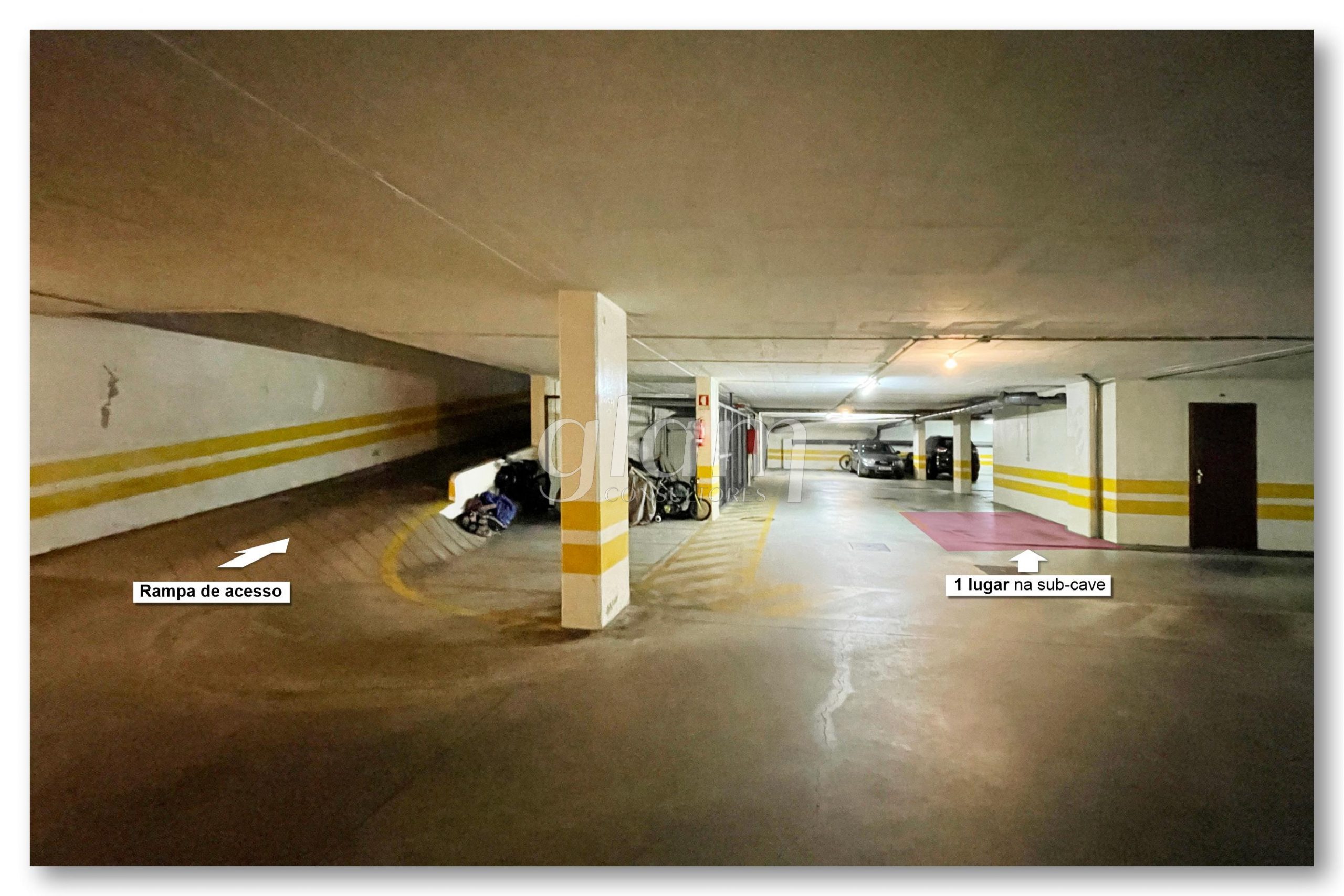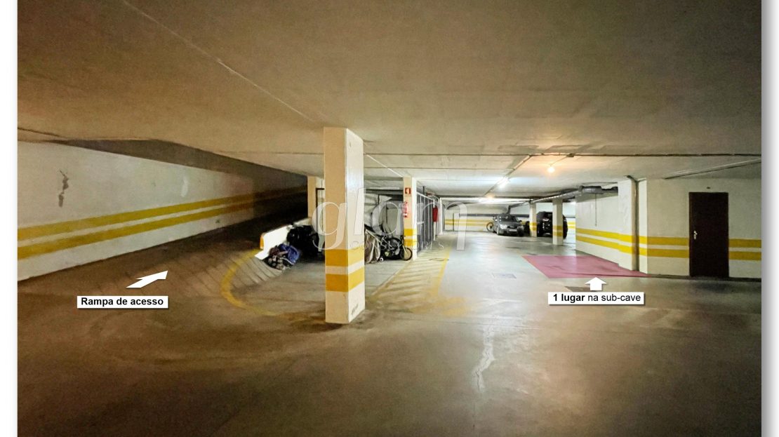 Dispõe de garagem na sub-cave para 1 automóvel e arrumos fechados no vão do telhado.