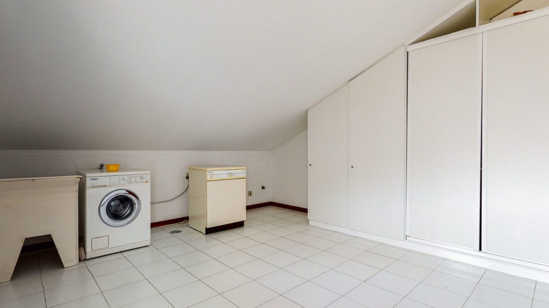 - lavandaria equipada com roupeiros de parede para guardar roupas e acessórios, máquina de lavar e máquina de secar,