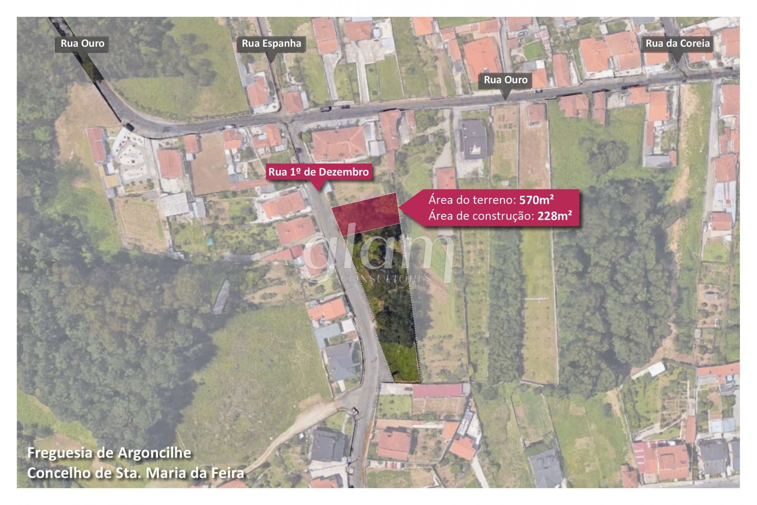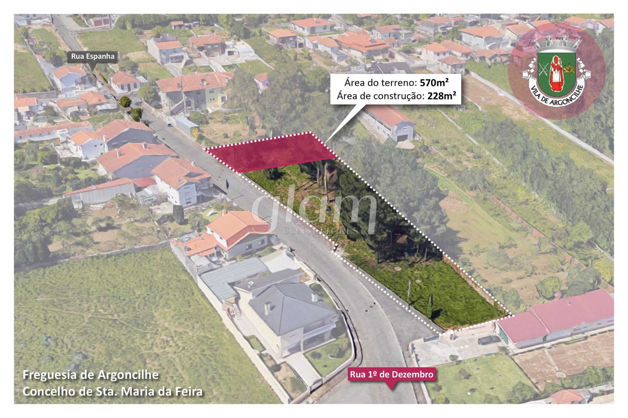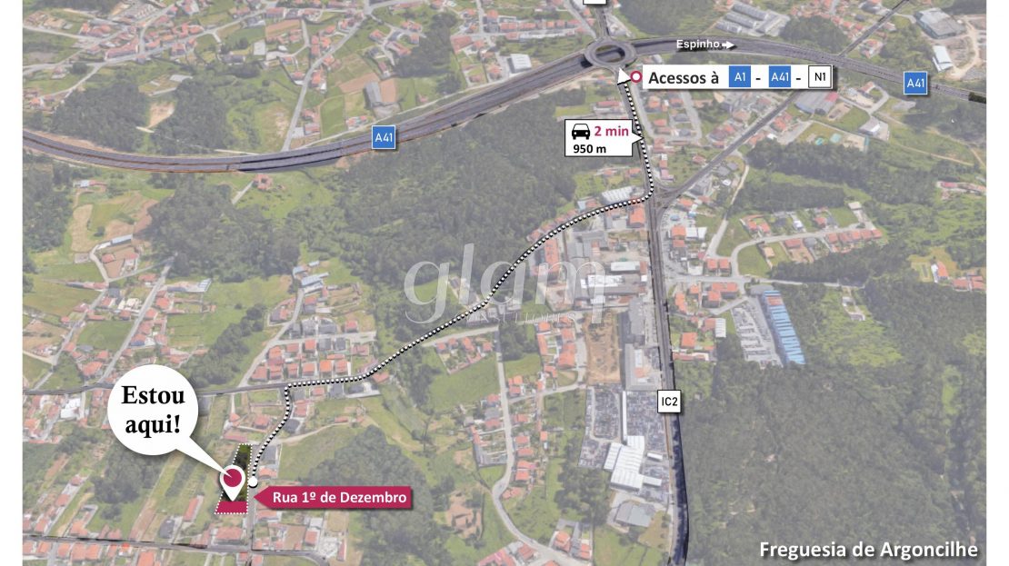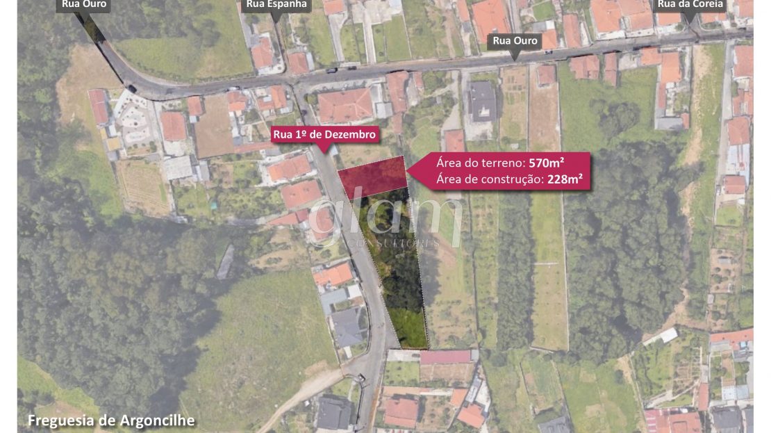 Parcela de terreno (lote 3) para construção de moradia independente, localizado na Rua 1.º de Dezembro em Argoncilhe, bem próximo da N1 e do acesso
