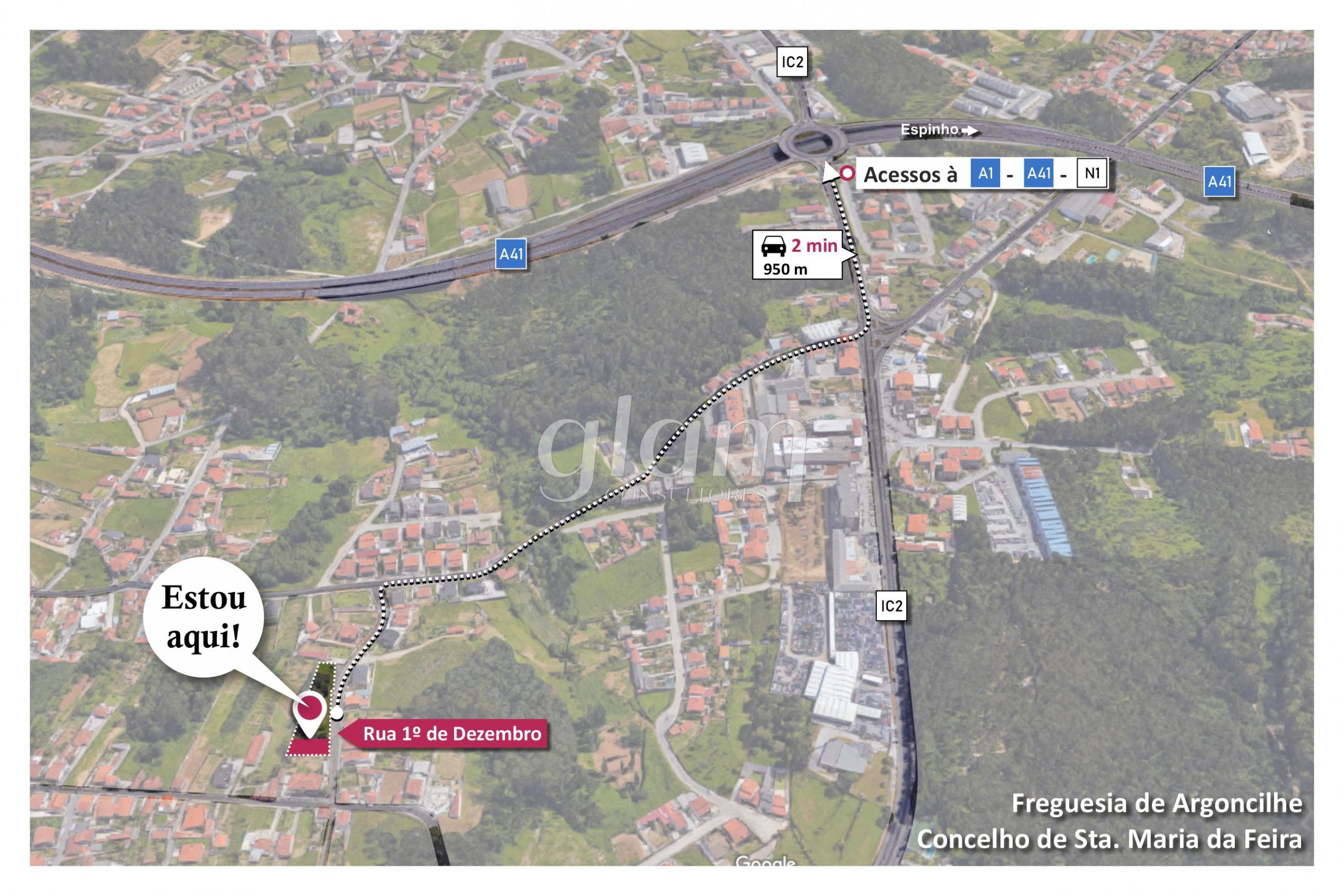 à A41, o que permite uma ligação rápida à cidade de Espinho, Santa Maria da Feira ou Vila Nova de Gaia e Porto.